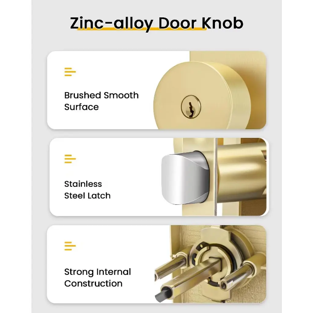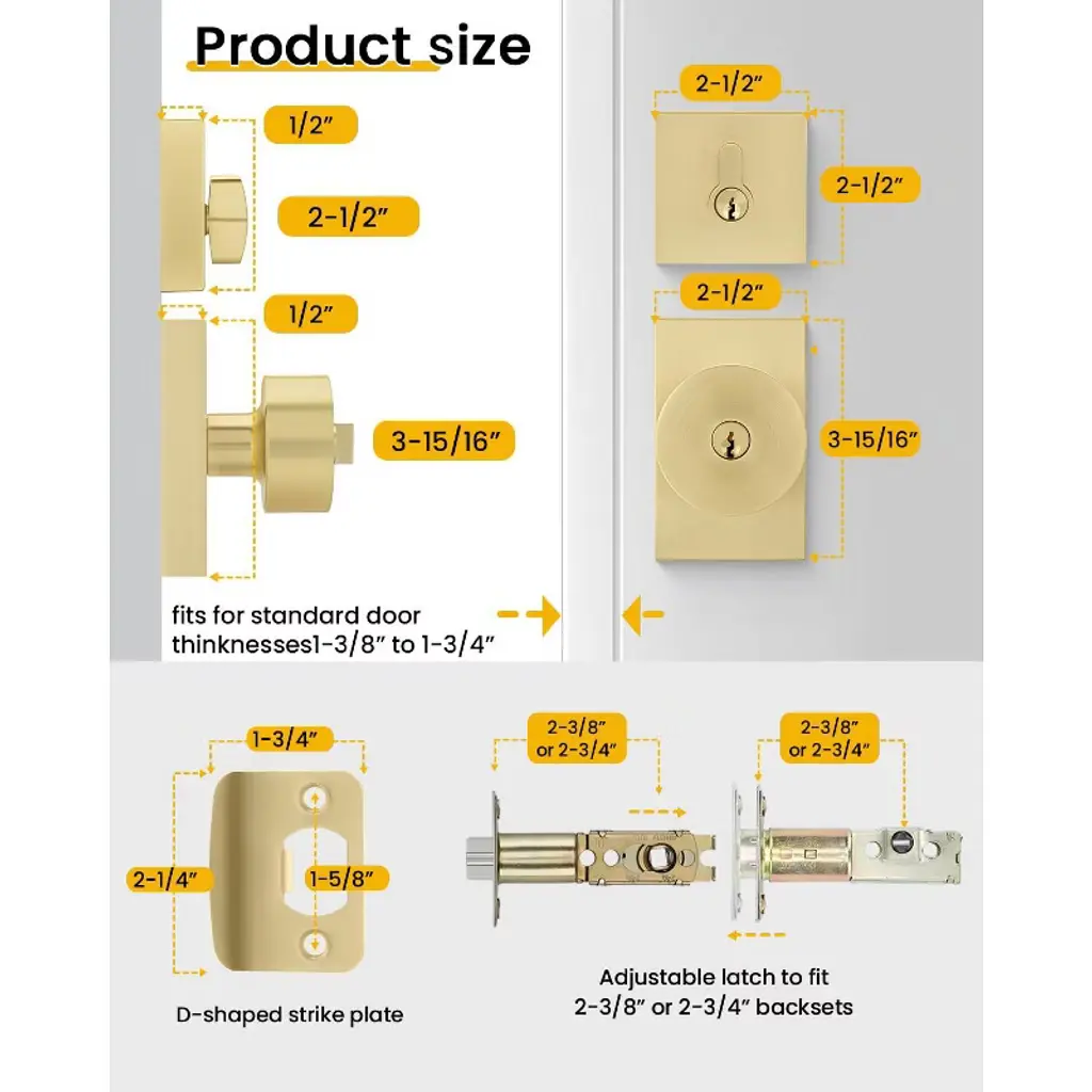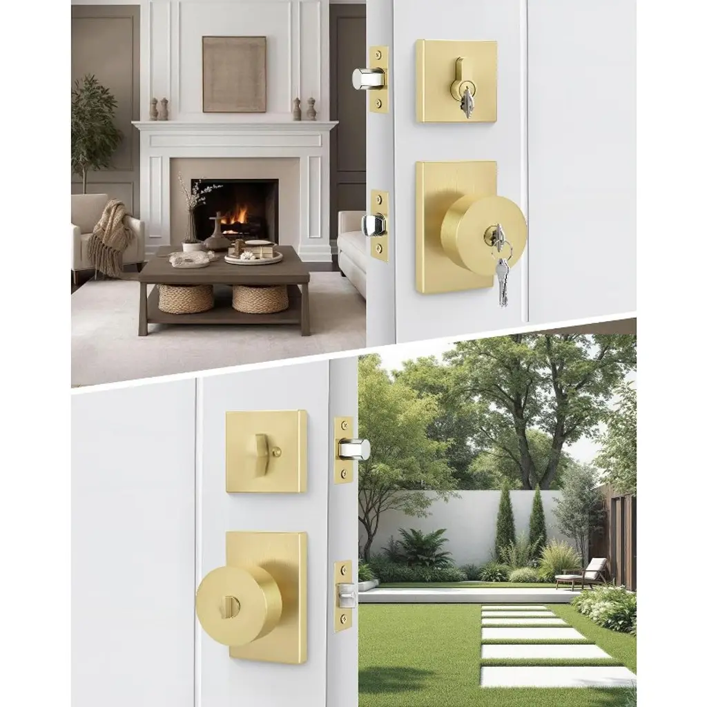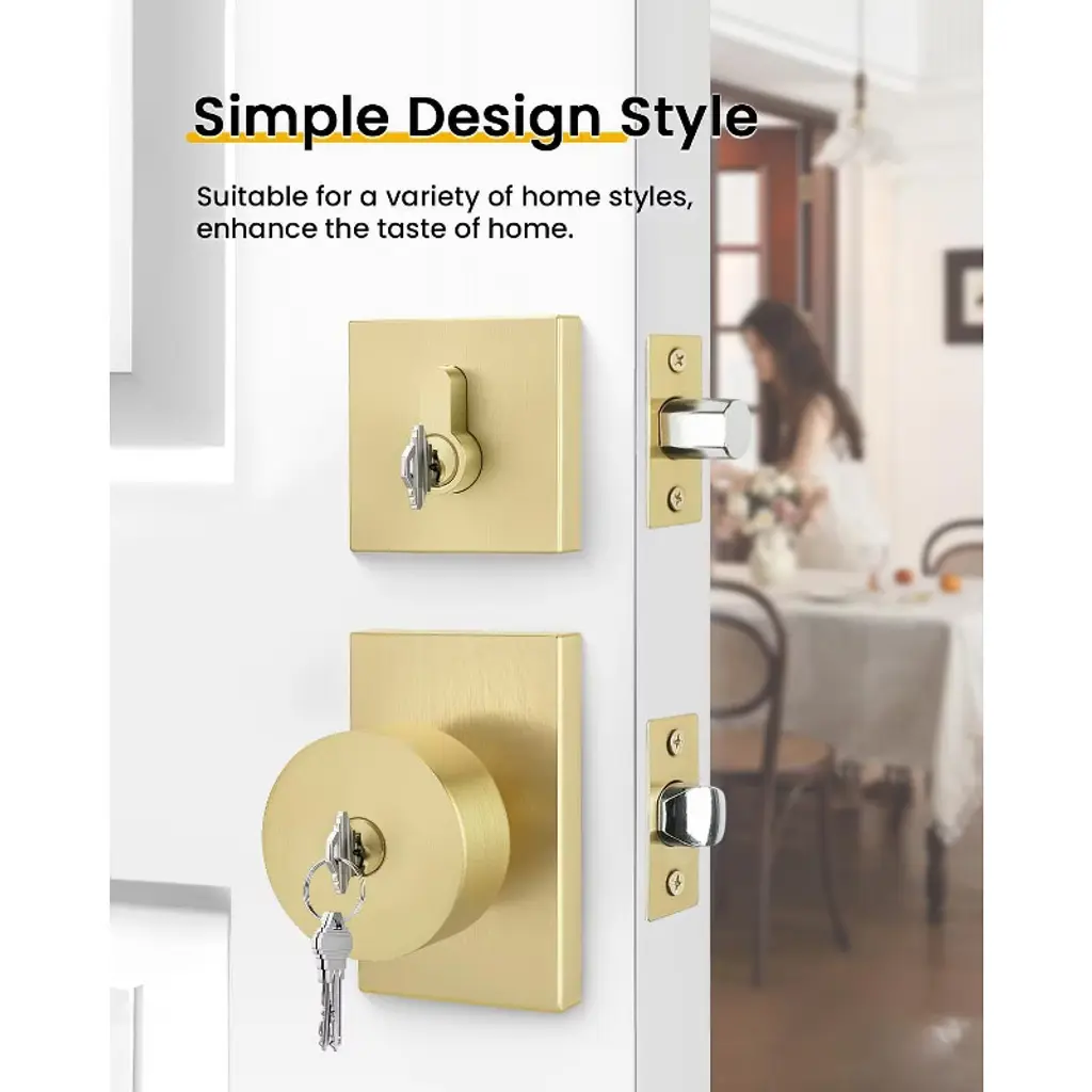 Enhance your home's security and style with these high - quality door lock sets. Made of premium zinc alloy and stainless steel, they offer excellent rust protection and anti - oxidation. The electroplating technology ensures anti - corrosion, providing long - lasting use. The adjustable latch fits different backsets and door thicknesses, and the reversible knob can be used on both right - and left - handed doors. The brushed texture of the knob gives a smooth and comfortable touch. The package includes all necessary components and an installation guide, and it can be easily installed with a screwdriver. These lock sets are perfect for front doors, making a strong first impression and adding a modern and classic look to your home. They come in a 2 - pack, offering great value for your money.