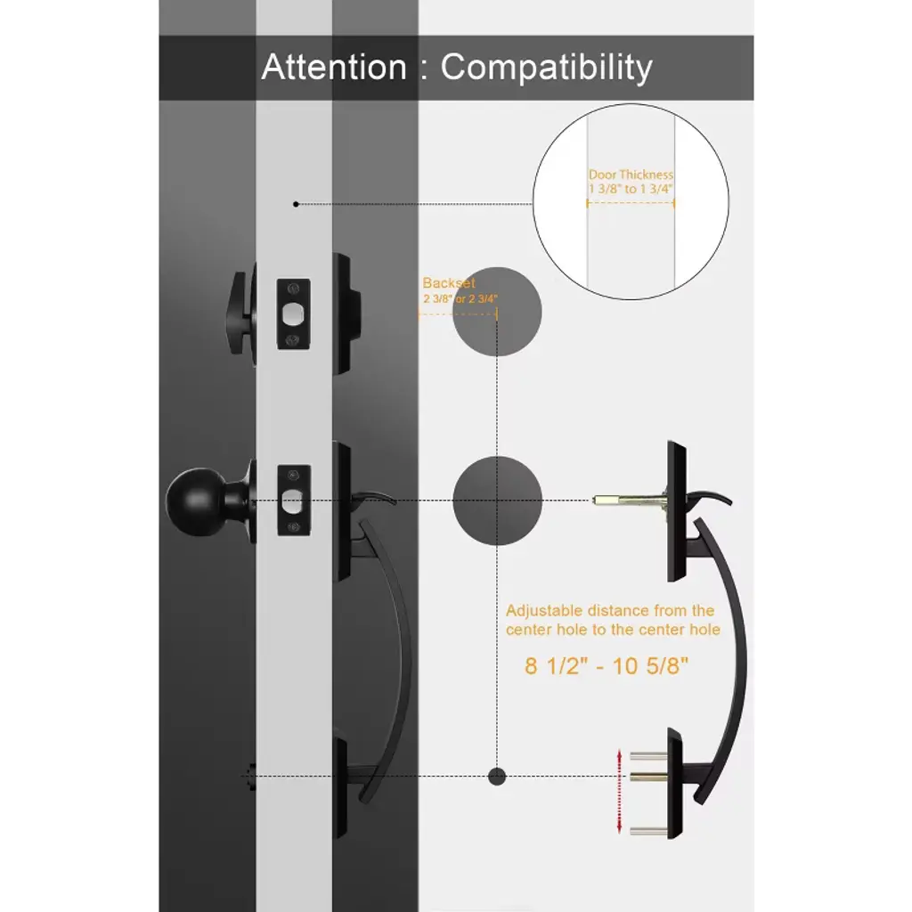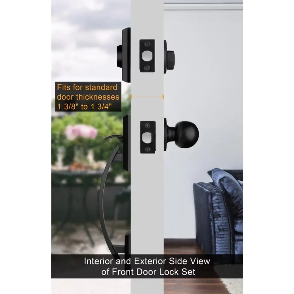 Upgrade your front door with this stylish and practical entry door lock set. The set comes with a reversible knob handle and a deadbolt, suitable for both right - handed and left - handed doors. It features an adjustable latch that can fit different backsets, making it versatile for various door types. Installation is straightforward; just use a screwdriver and follow the included guide. Made of premium zinc alloy and stainless steel, it offers excellent durability. The matte black finish gives it a modern and classic look, enhancing your home's exterior. Whether you're welcoming guests or going about your daily routine, this lock set provides both security and style, making it a must - have for any home.