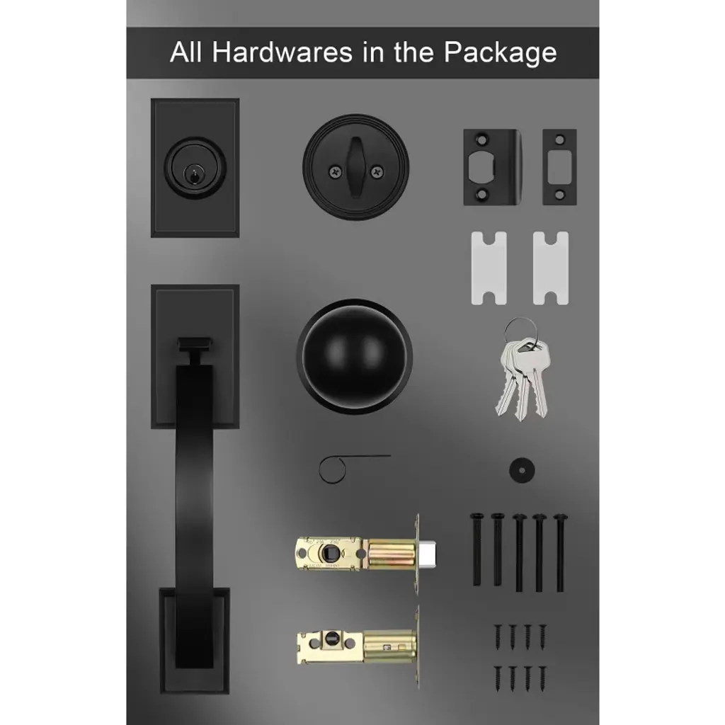 Itopfox Matte Black Front Door Handle And Deadbolt Set With Reversible Knob, Modern Exterior Door Lock For Home Security