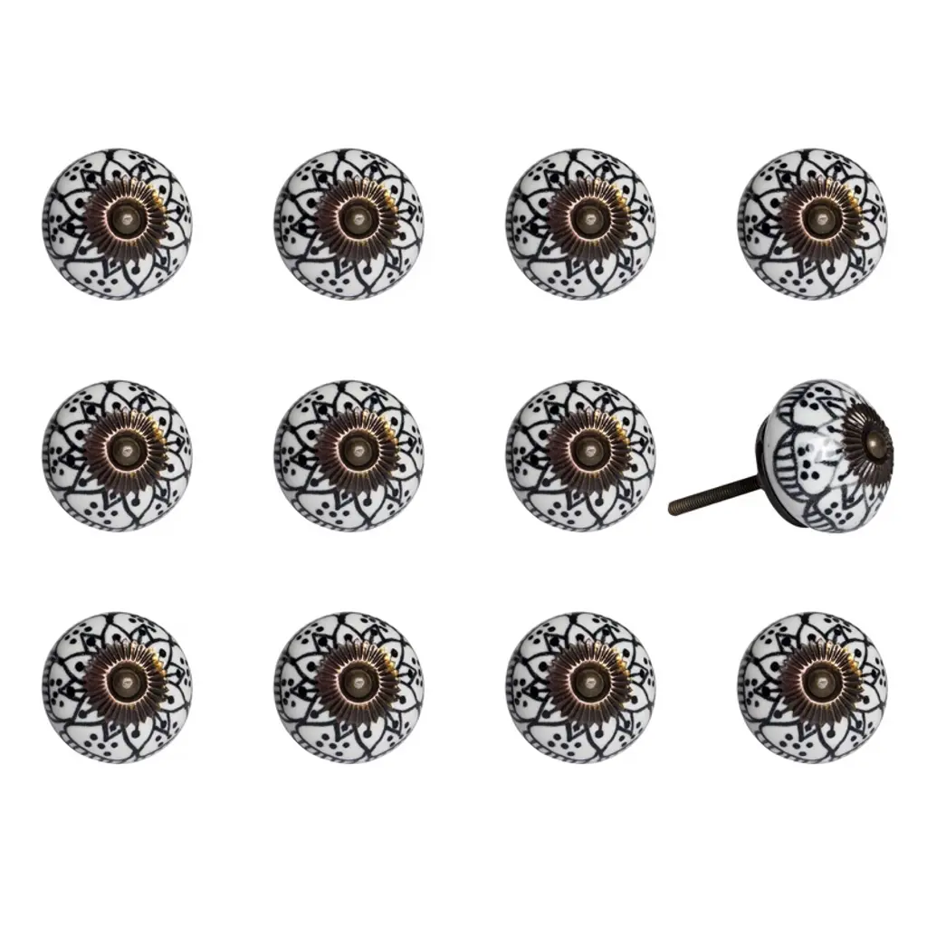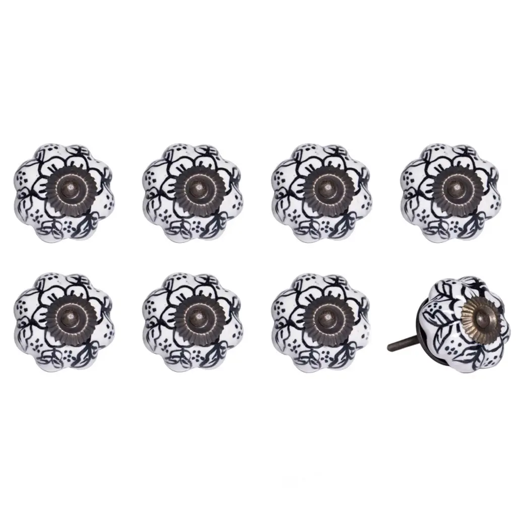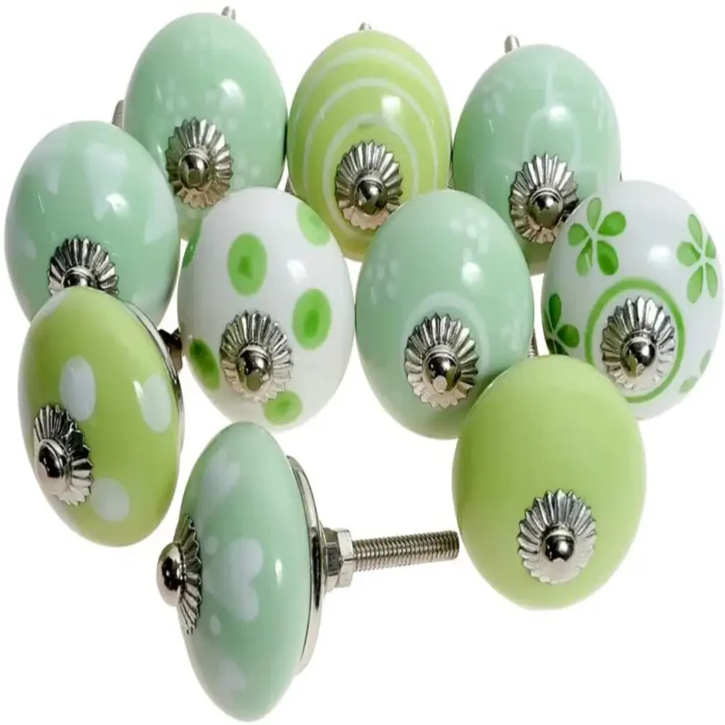 Cheerful and refreshing, our unique vintage knobs are a great addition to any room. Beautifully hand painted by skilled artisans, the bright colors and antique charm add a bohemian flair and traditional touch. With bolts that can be trimmed to size, our knobs are useful in a variety of applications, including cabinets, drawers, doors, cupboards and more. Dress up your furniture without breaking the bank!