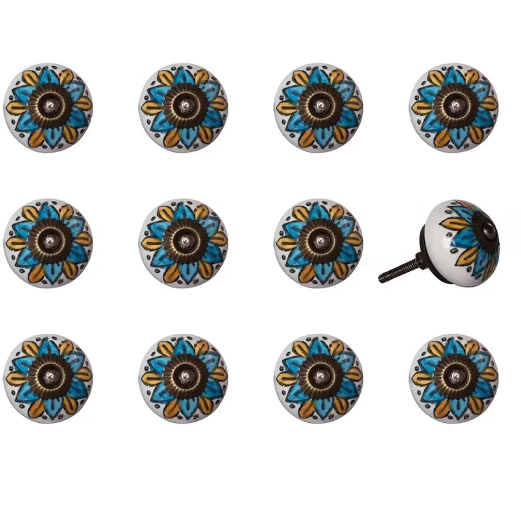 Cheerful and refreshing, our unique vintage knobs are a great addition to any room. Beautifully hand painted by skilled artisans, the bright colors and antique charm add a bohemian flair and traditional touch. With bolts that can be trimmed to size, our knobs are useful in a variety of applications, including cabinets, drawers, doors, cupboards and more. Dress up your furniture without breaking the bank!