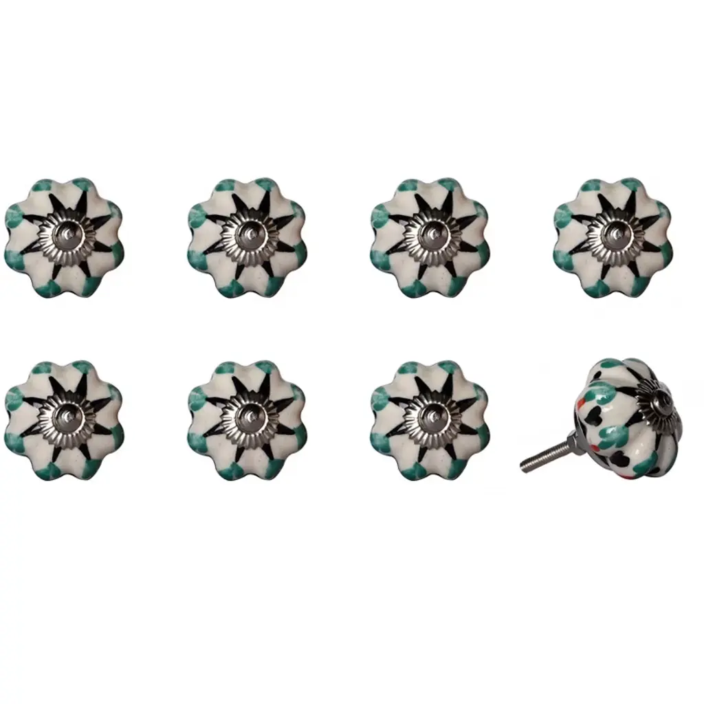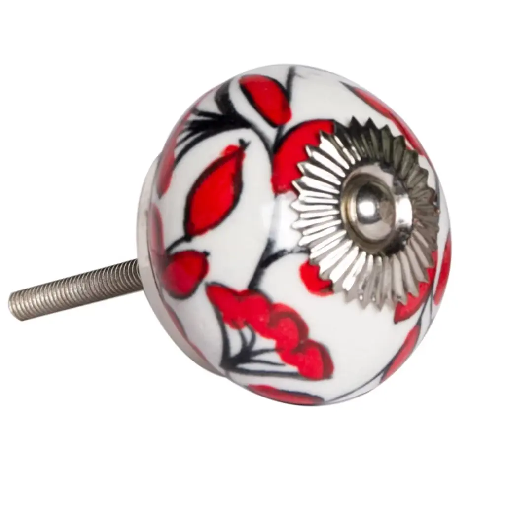 Cheerful and refreshing, our unique vintage knobs are a great addition to any room. Beautifully hand painted by skilled artisans, the bright colors and antique charm add a bohemian flair and traditional touch. With bolts that can be trimmed to size, our knobs are useful in a variety of applications, including cabinets, drawers, doors, cupboards and more. Dress up your furniture without breaking the bank!Features:Hand painted with antique charmNo additional hardware requiredSize: 1.5" inch diameter1.25" inch bolt can be trimmed to sizeEasy InstallationCare: Wipe clean with a dry cloth