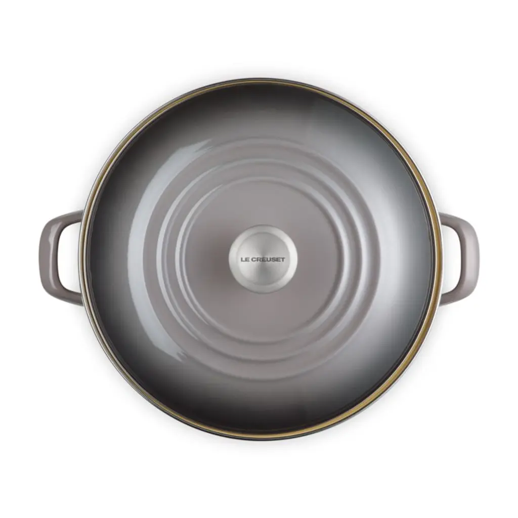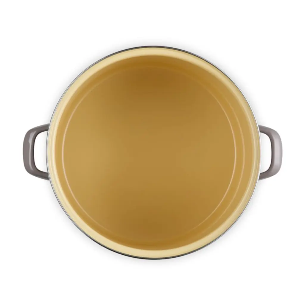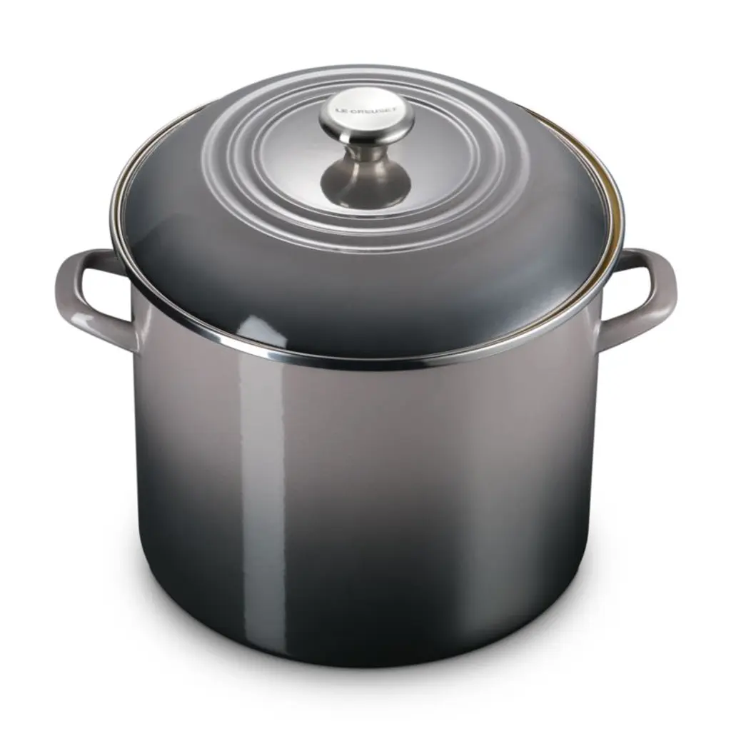 Enamel in an ombre grey inspired by oysters coats this versatile stockpot. The stain-resistant porcelain enamel glazes a base of lightweight, fast-heating and responsive carbon steel. Two stainless steel accentsa rim that prevents chipping and a stay-cool knob on the lidadd gleaming highlights. The oversized stockpot is fashioned with tall, straight sides, making it ideal for soups, stocks, pasta and seafood boils.Revered by both professional chefs and home cooks since its 1925 debut, Le Creuset's classic French cookware is prized for its utilitarian beauty and performance.