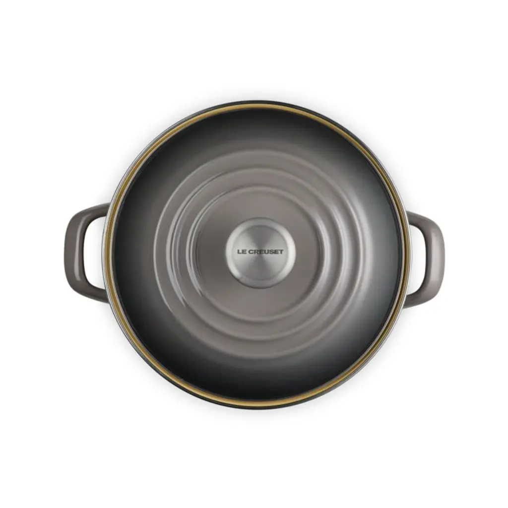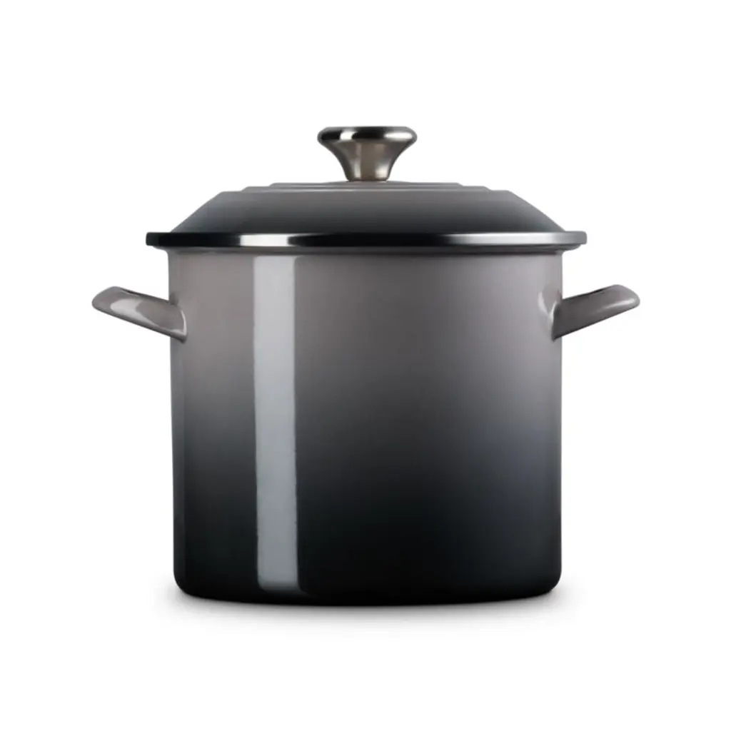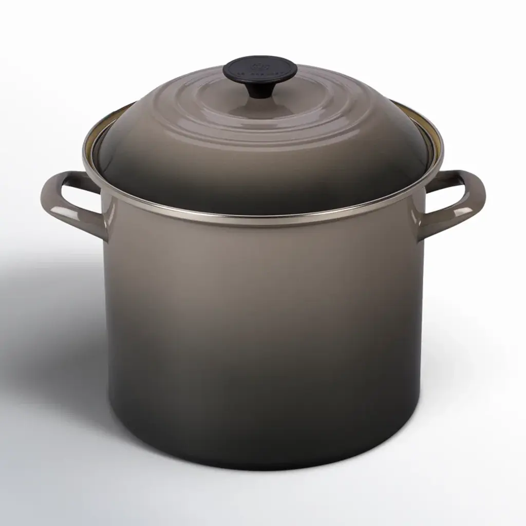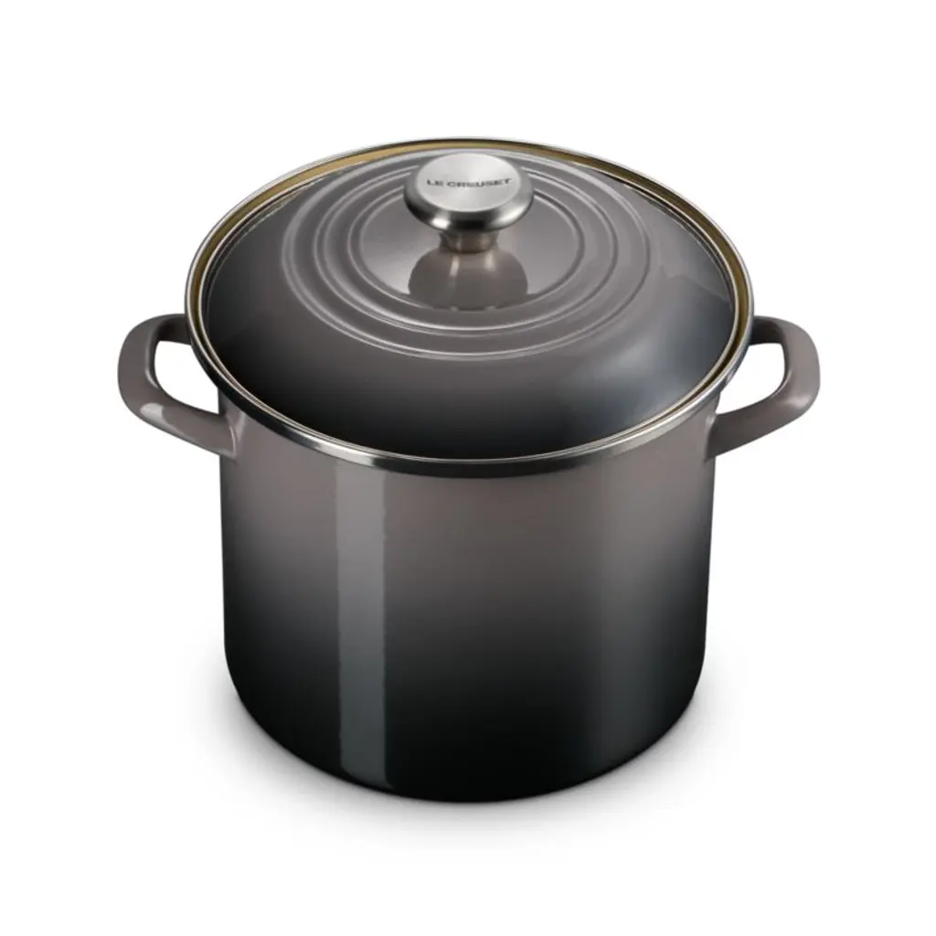 Enamel in an ombre grey inspired by oysters coats this versatile stockpot. The stain-resistant porcelain enamel glazes a base of lightweight, fast-heating and responsive carbon steel. Two stainless steel accentsa rim that prevents chipping and a stay-cool knob on the lidadd gleaming highlights. The large-capacity stockpot is fashioned with tall, straight sides, making it ideal for soups, stocks, pasta and seafood boils.Revered by both professional chefs and home cooks since its 1925 debut, Le Creuset's classic French cookware is prized for its utilitarian beauty and performance.