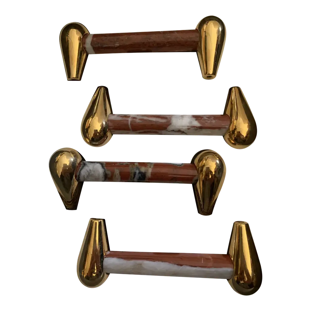 Lot Of 4 Late 20th Century White And Red Handmade Marble Door Knobs