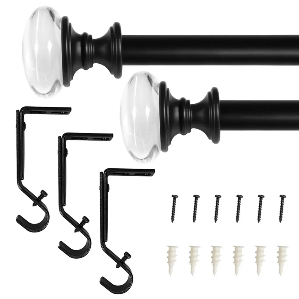 Lumi Home Furnishings all-inclusive Matte Black Drapery Rod Kit with Crystal Knob finials beautifully adorn your classic window treatments. Featuring a versatile Matte Black finish that complements a variety of timeless and traditional decor styles. This complete curtain rod kit includes a telescoping pole, two 3/4" finials, brackets and mounting hardware for a quick and easy installation.