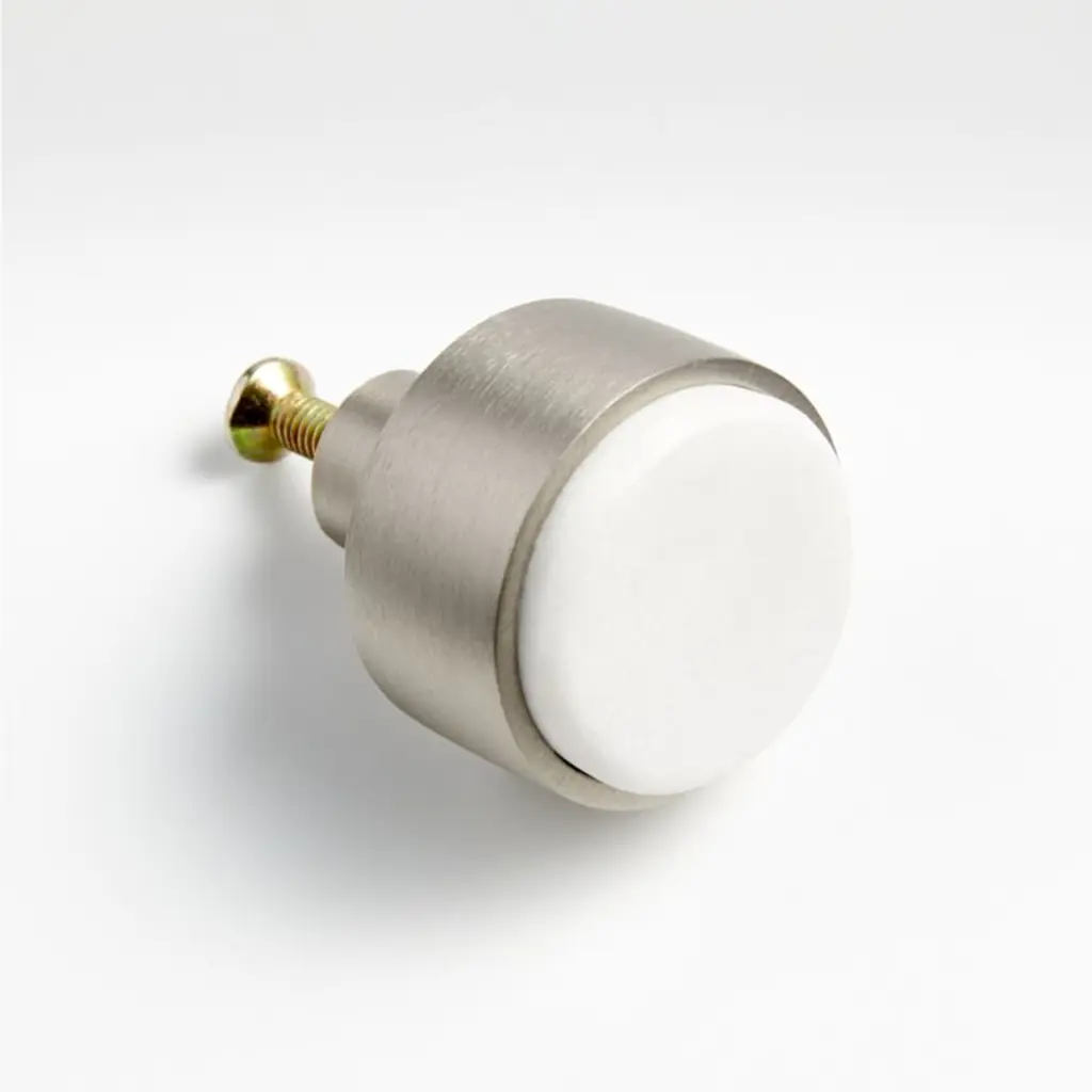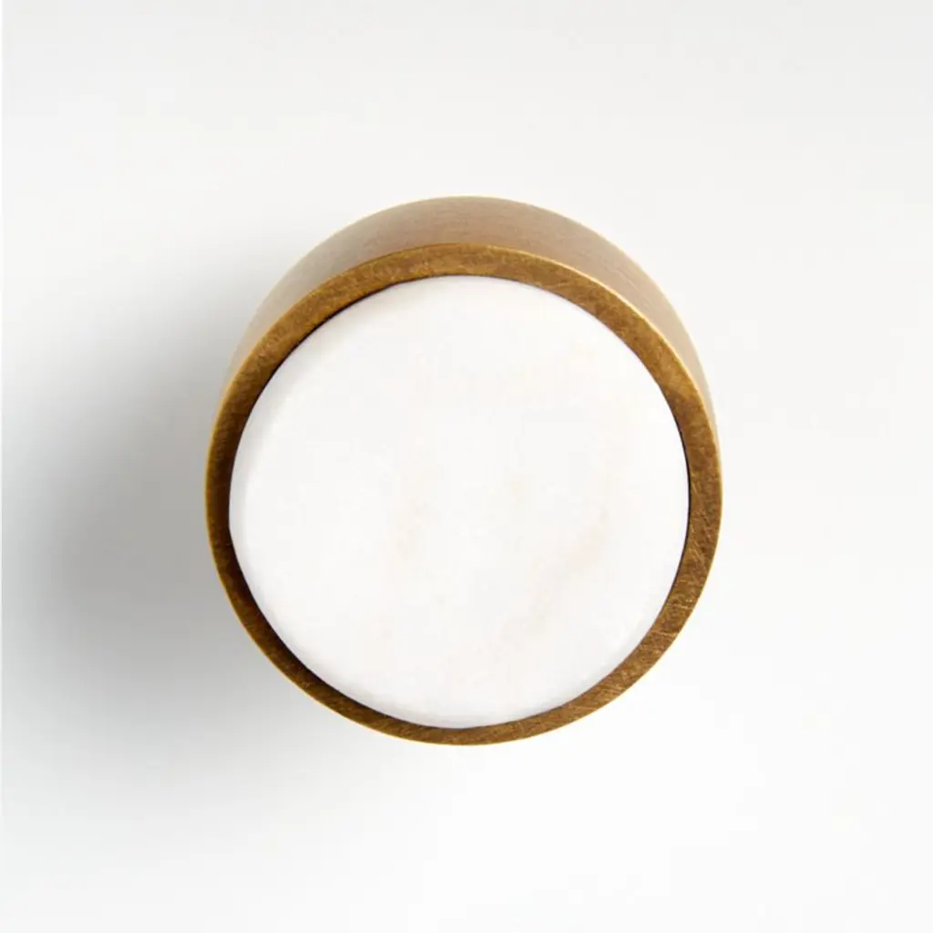 Each one of these handsome knobs begins with a hand-selected piece of white marble that's cut, shaped and polished to fit perfectly in a cylindrical setting finished in antique brass. An instant update for the kitchen, bathroom or your favorite piece of furniture, the knob adds a touch of glam to cabinets and drawers. Each marble-and-brass knob is handcrafted and easy to install.
