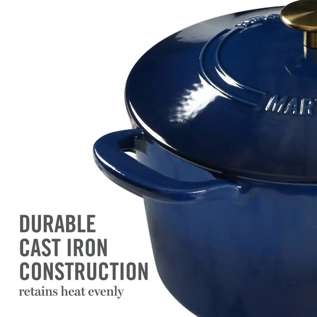 Martha Stewart Gatwick 7Qt Enamel Cast Iron Dutch Oven Navy With Gold Knob: 7 Quart Pot, Oven-safe, Gas & Electric Compatible