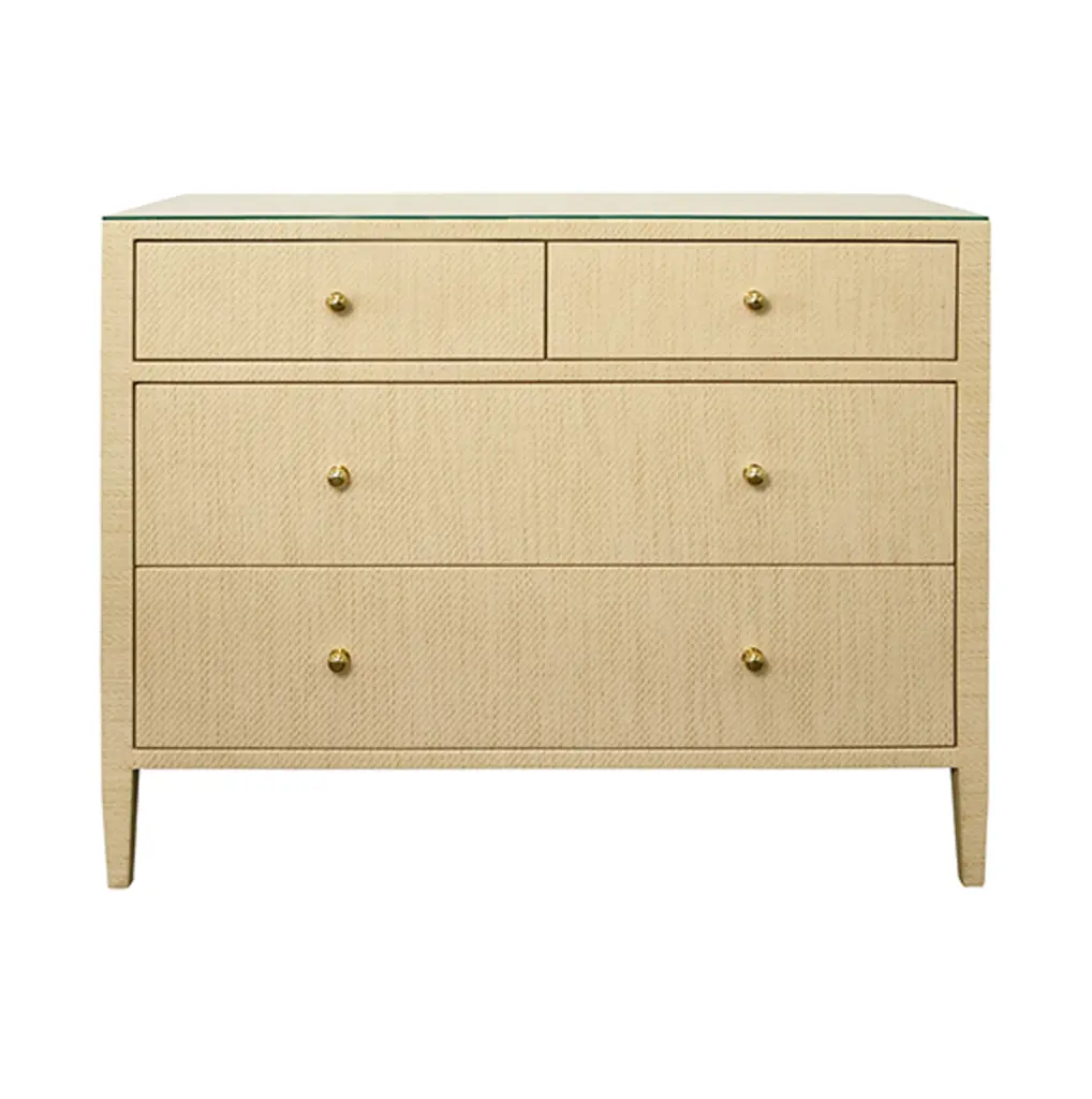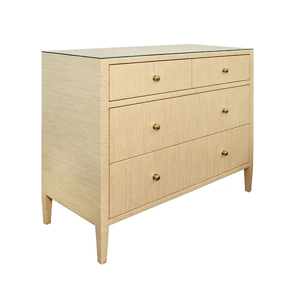 Matthew Izzo Home - Michelle Natural Grasscloth, Glass Top, Four Drawer Chest With Brass Knobs
