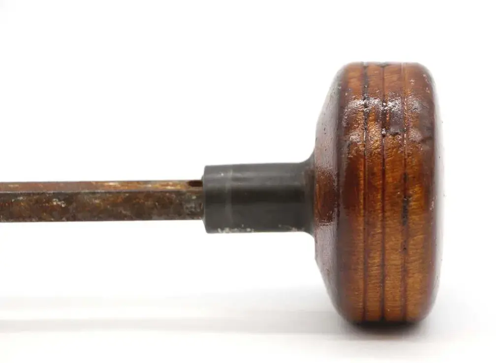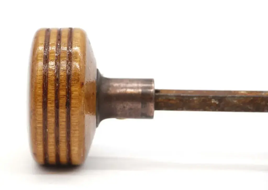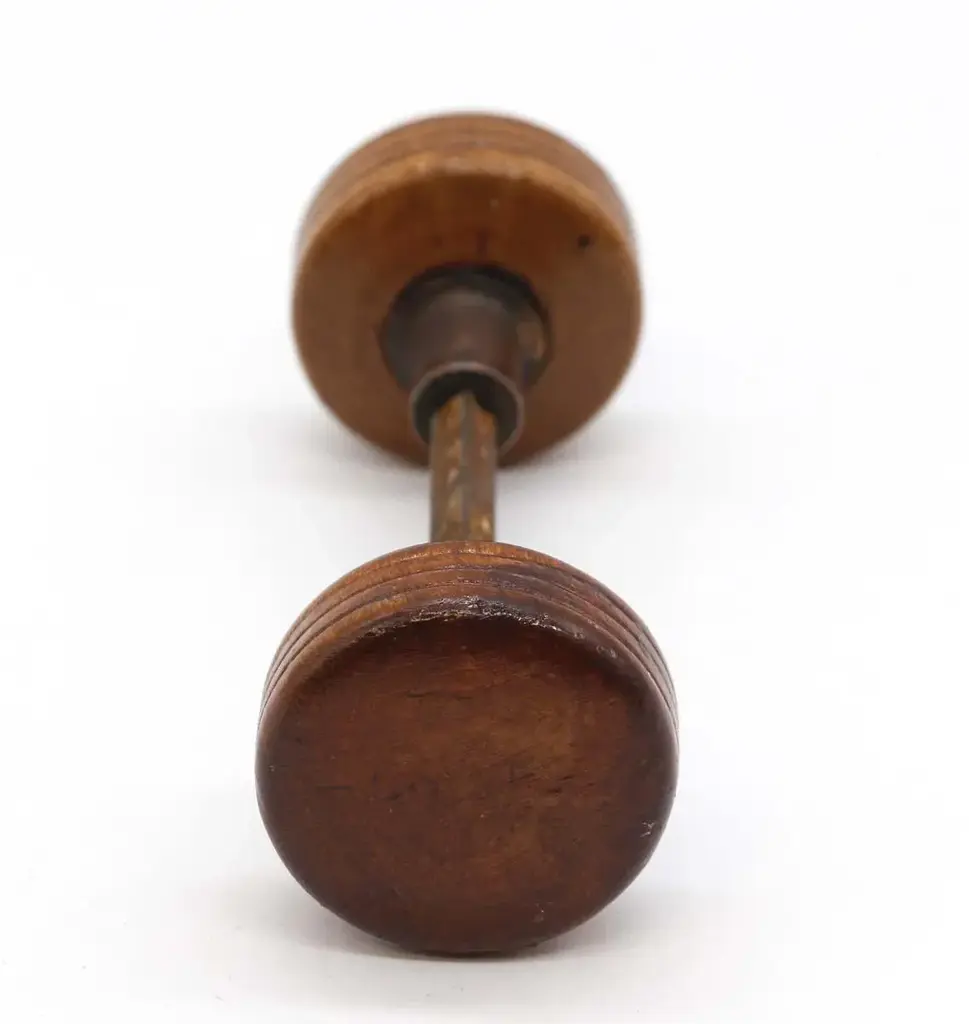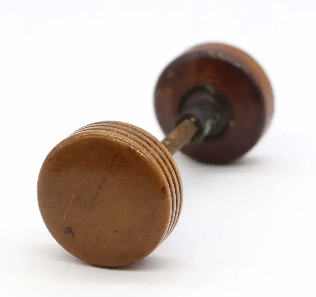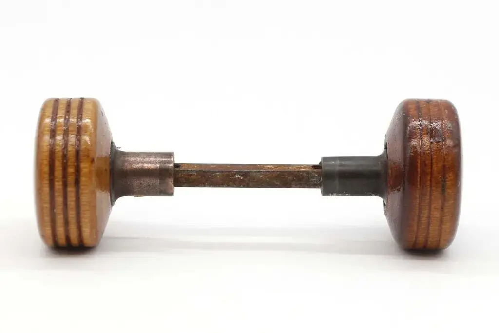 Mid 20th Century Restored Round Flat Front Wood Door Knobs With Cast Iron Shank