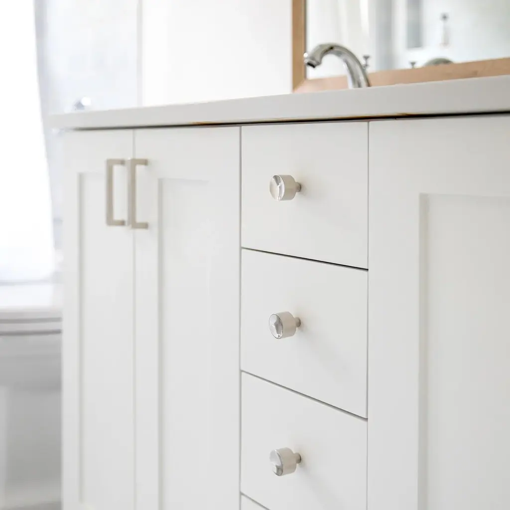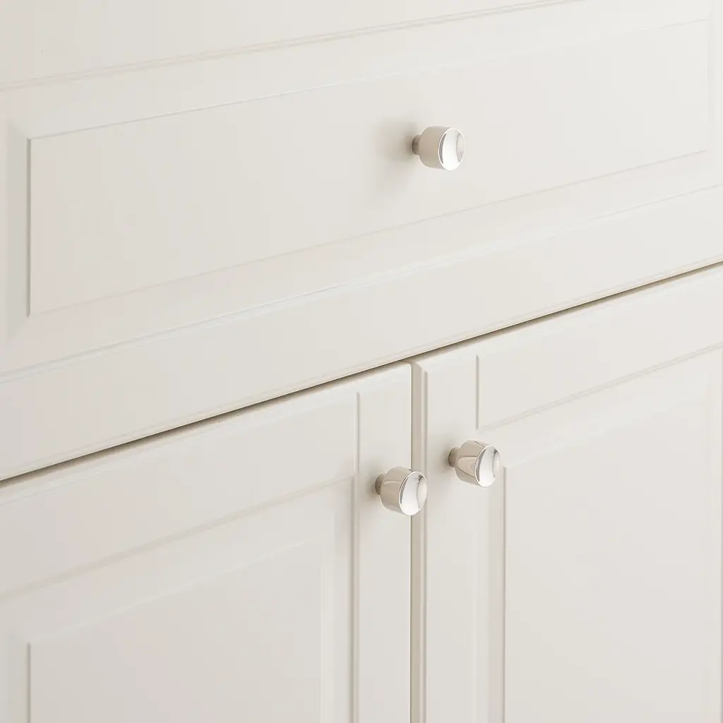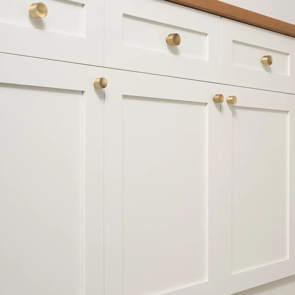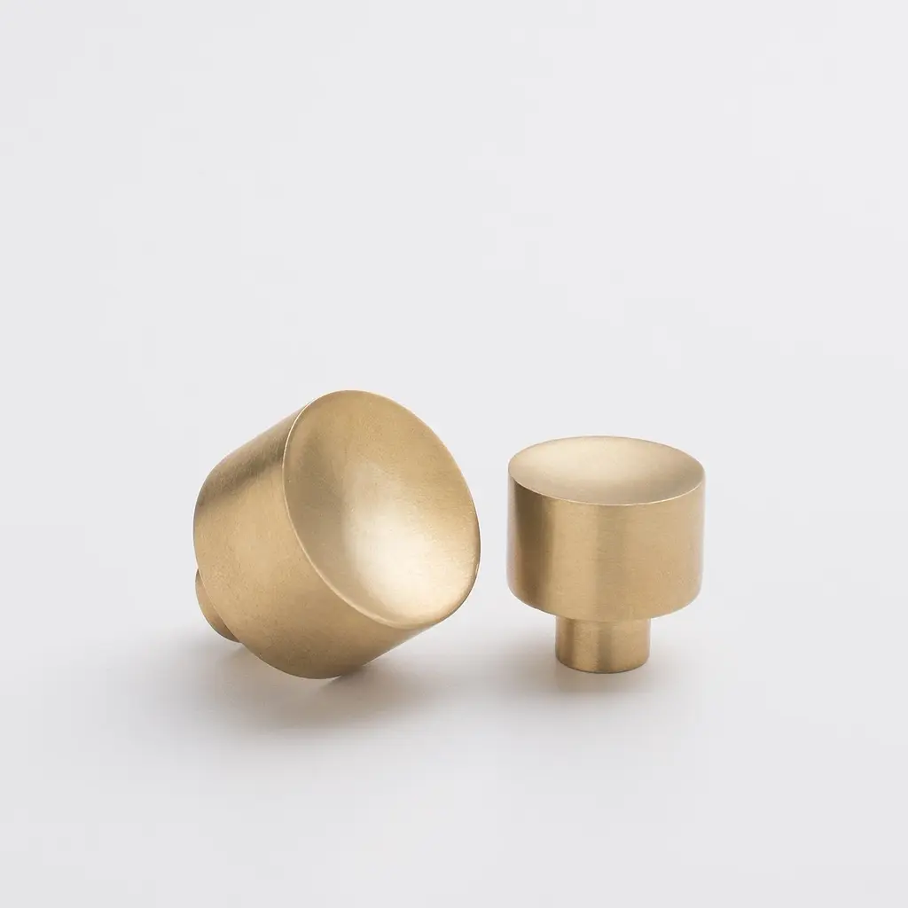 The solid brass Mid Century Knob has a bold, cylindrical shape with a concave face that catches just a touch of light. While rooted in Mid Century design, this knob has a timeless appeal. Each knob is made in the U.S. from 95% recycled brass.