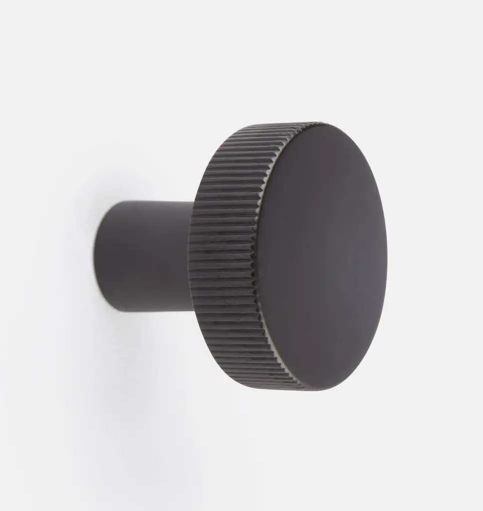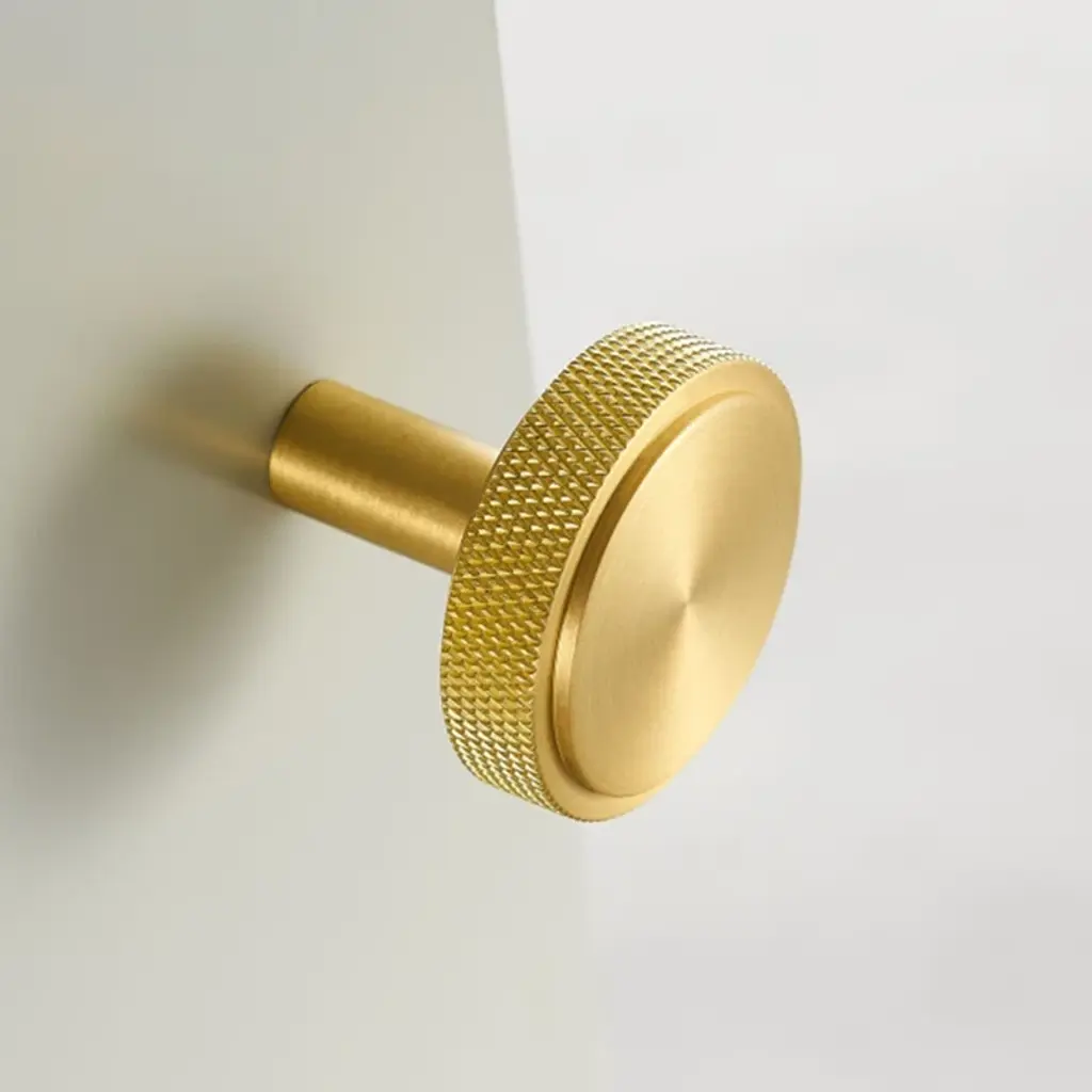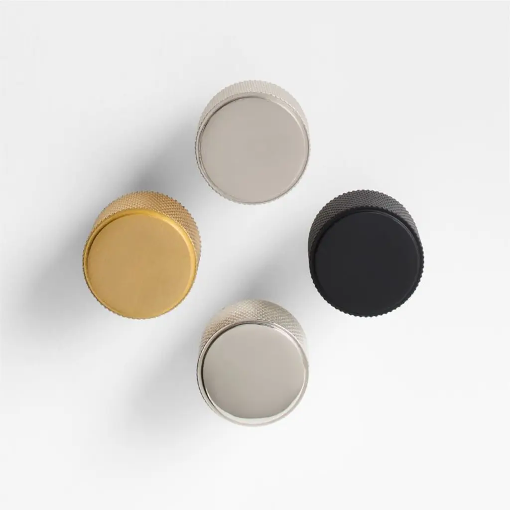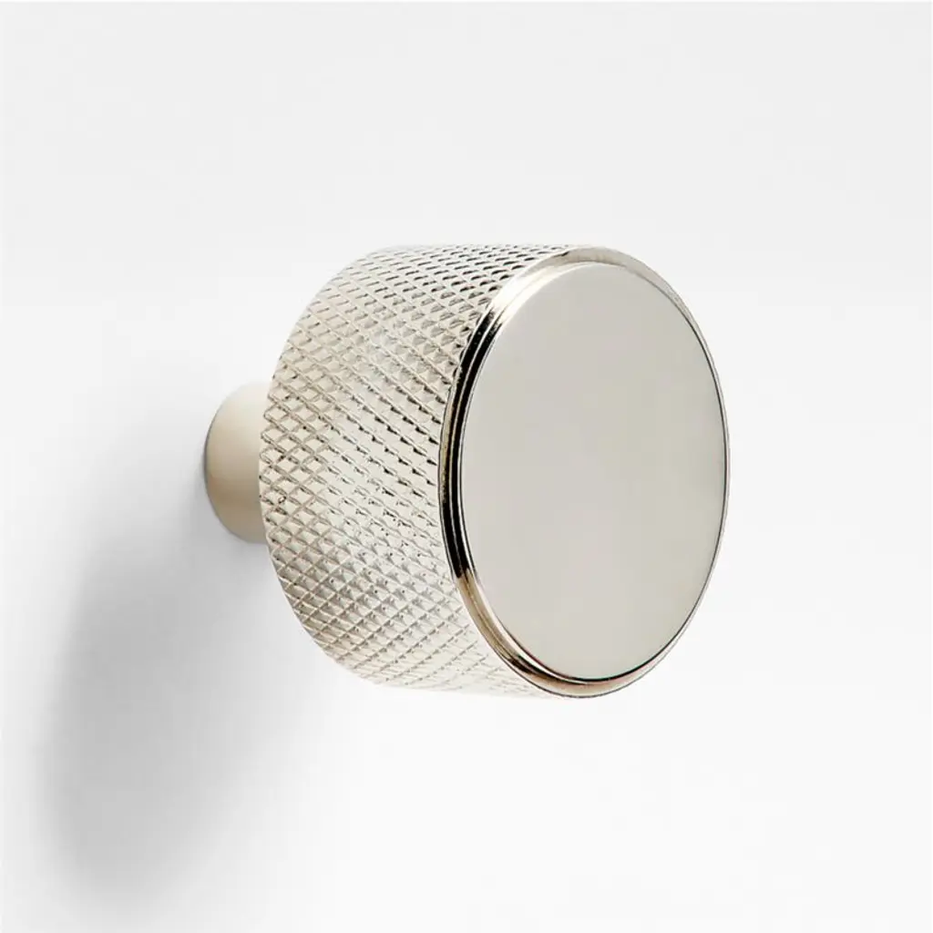 Sometimes it's the small things that pull a room together. That's why we've designed a hardware collection with modern silhouettes, clean lines and a touch of tradition to give your kitchen or bath that perfect finishing touch. Finished in brushed nickel, this knurled knob lends industrial chic to its minimalist design. The traditional metalworking technique creates a diamond-shaped texture that provides a sure gripbut we're more obsessed with the glam way the cut metal sparkles. The knob instantly elevates kitchen drawers and bathroom cabinet doors, installing easily with the included hardware.