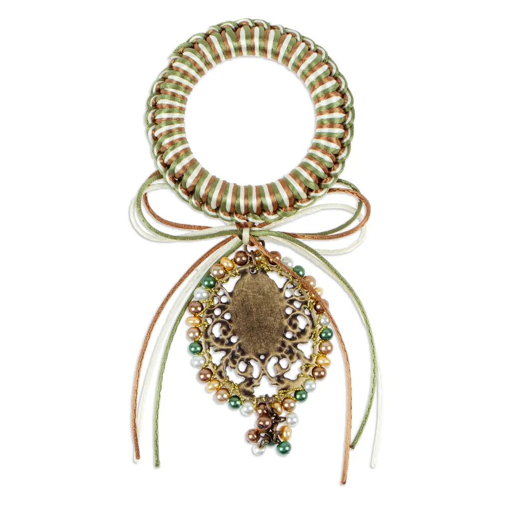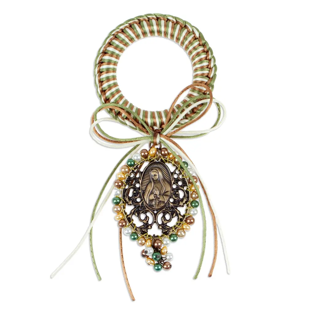 Novica Handmade Guadalupes Emblem Beaded Metallic Door Knob Hanger - Green