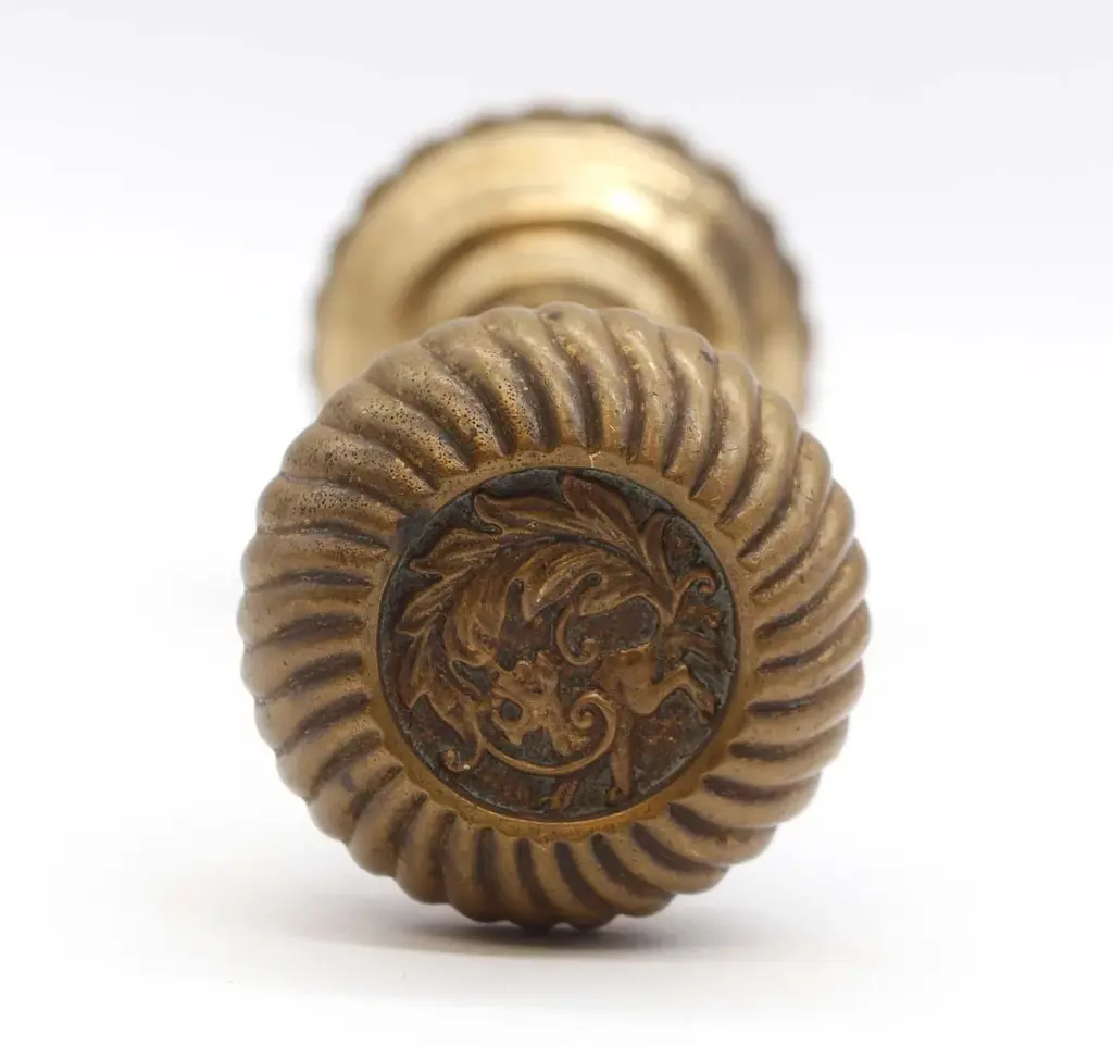 Pair Of Antique 1890s Corbin Bronze Fanciful Beast Entry Door Knobs