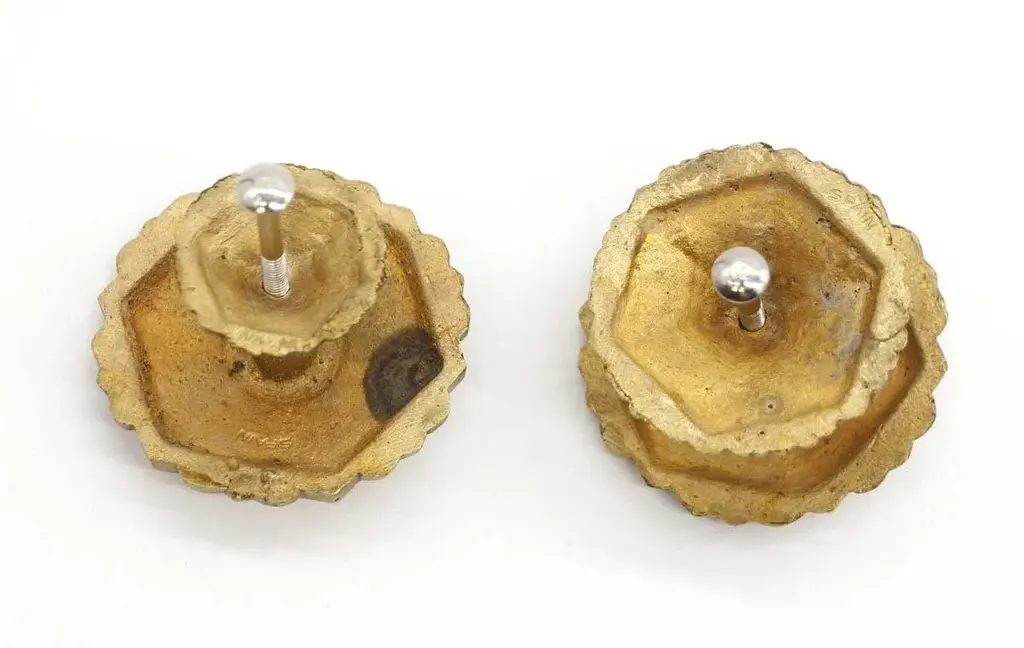 Pair Of Vintage 2.25 In. Hexagon Scalloped Brass Cabinet Drawer Knobs