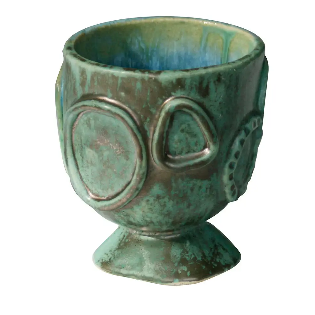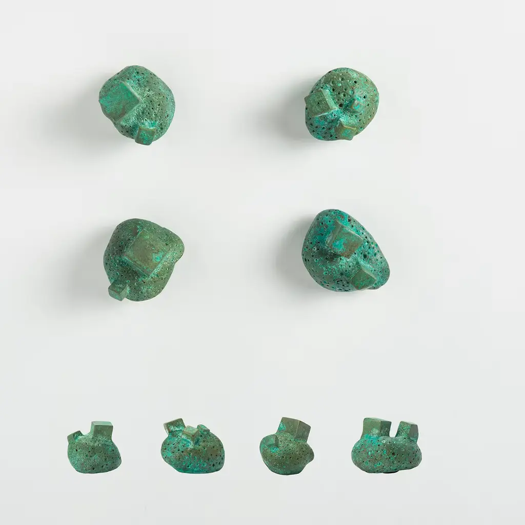 Deftly handmade of etched green brass, this exquisite door knob belongs to the Pietra series of doorknobs designed by Nicole Valenti. Superb in its choice of color, it features a porous, textured surface enhanced by two bulging elements that allow for a better grip and use. Best showcased in multiples or with others from the same collection for a cohesive look, it will add a singular accent to any decor.
