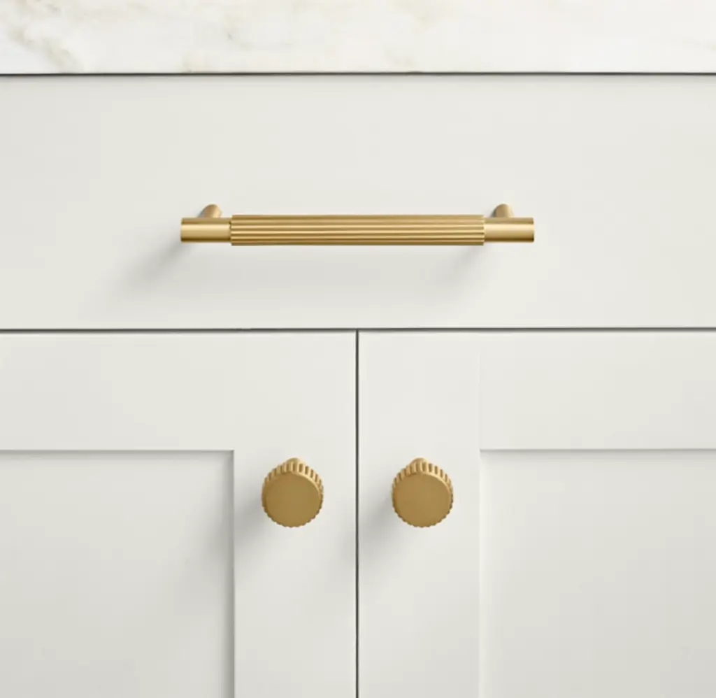 This collection from Jonathan Browning is expertly crafted from hand-polished, solid brass, the encircling pillars a nod to architectural design. Delicate channels between the tightly bound columns add a subtle rhythm and visual interest to the contoured forms.