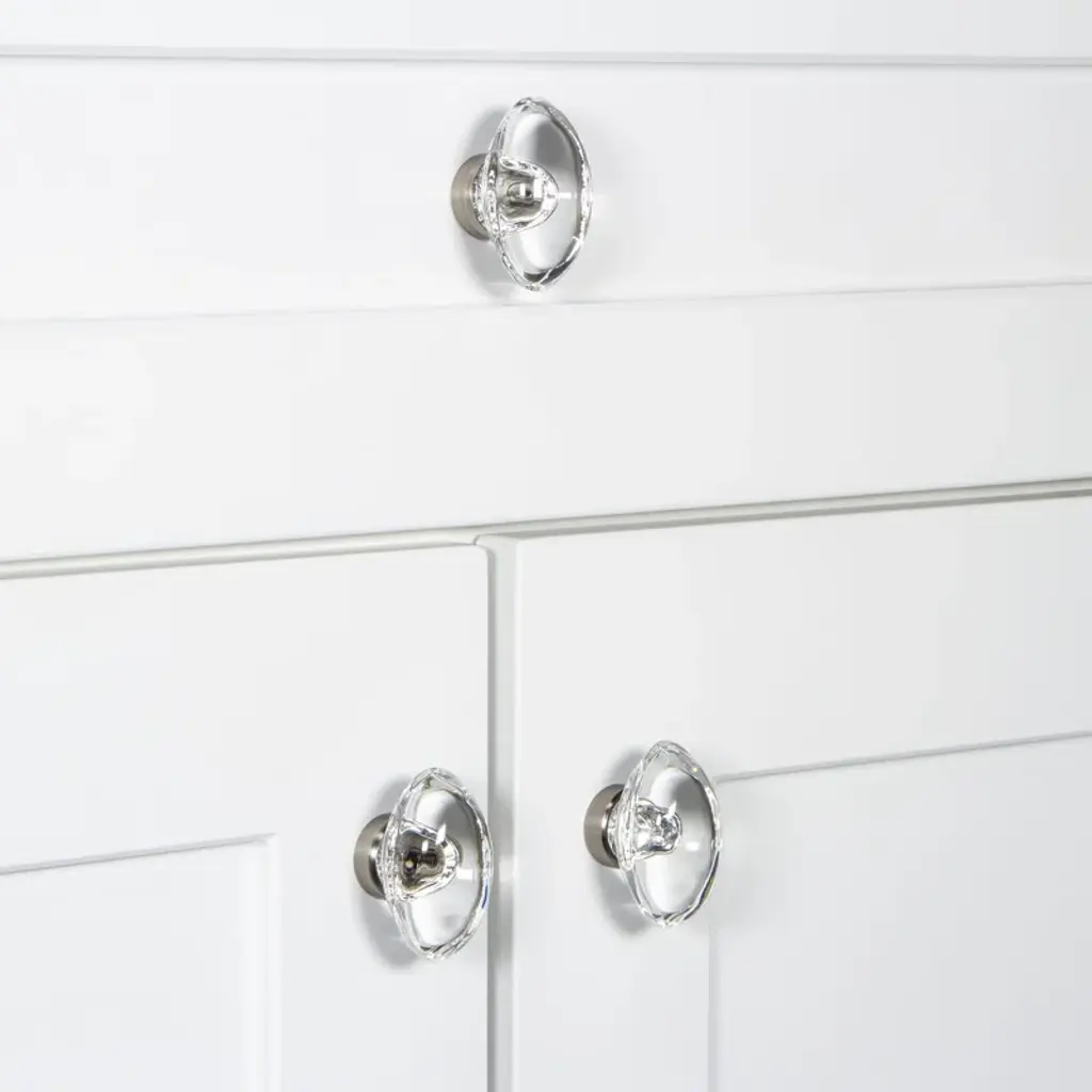 The Provence Crystal Cabinet Knob has a graceful oval shape that can blend with a variety of décor styles, from traditional to contemporary.