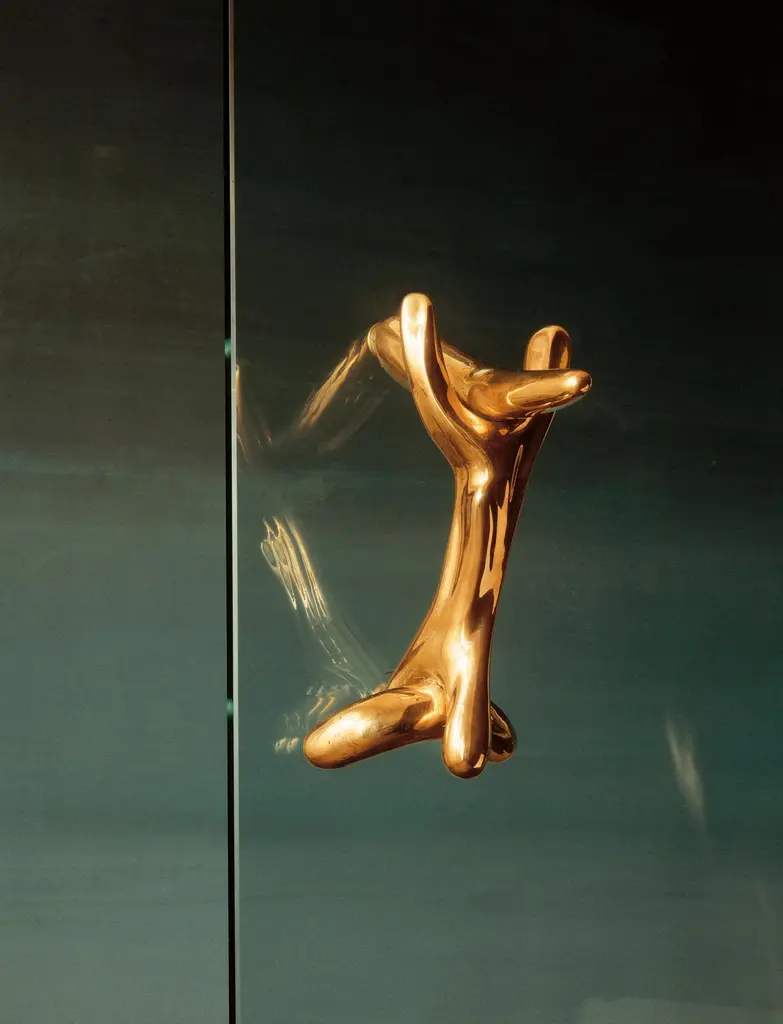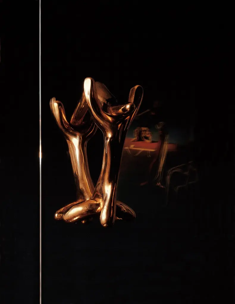 Rinocerontico Knob by Salvador Dalí 1937Dimensions: 13 x 19 x 24 h cmMaterials: Cast bronzeThree solid parts fused together by lost-wax casting in bronze andassembled to form a single body. The surface of the parts is a polished,glossy surface, and it includes a clear, 25-micron varnish based onhigh-strength epoxy resins, air dried.KNOB with the possibility of installing facing knobs on each side ofthe door, whether made of wood or glass, or a knob on just one side. BDB.