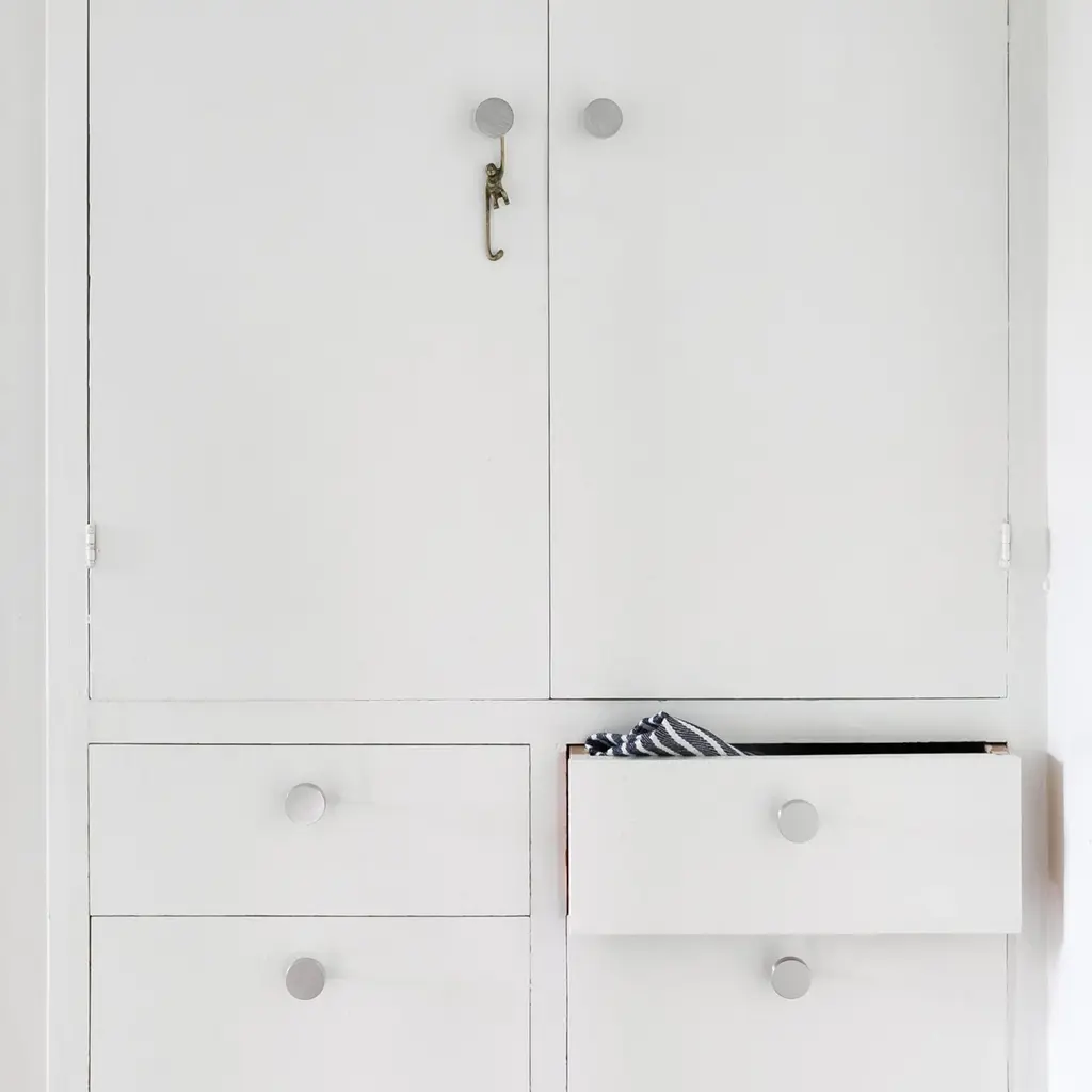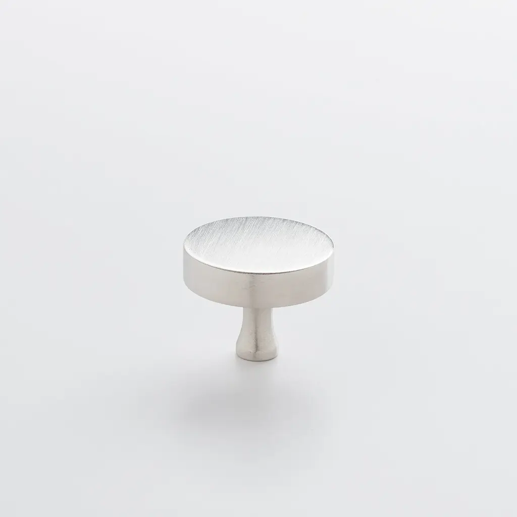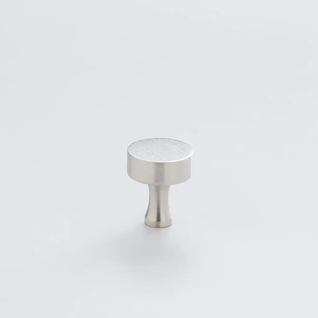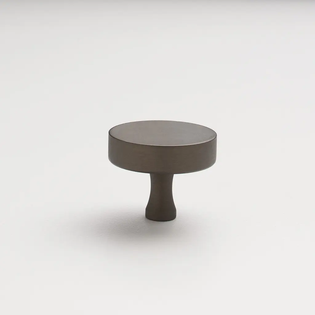 A flat finish and fluted neck give this solid brass round knob a clean, polished feel. Handcrafted in the USA from 95% recycled brass.