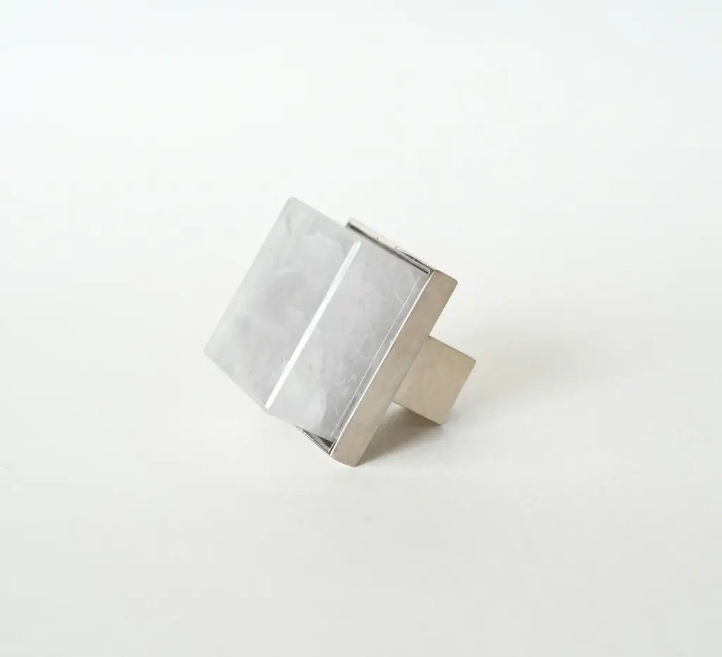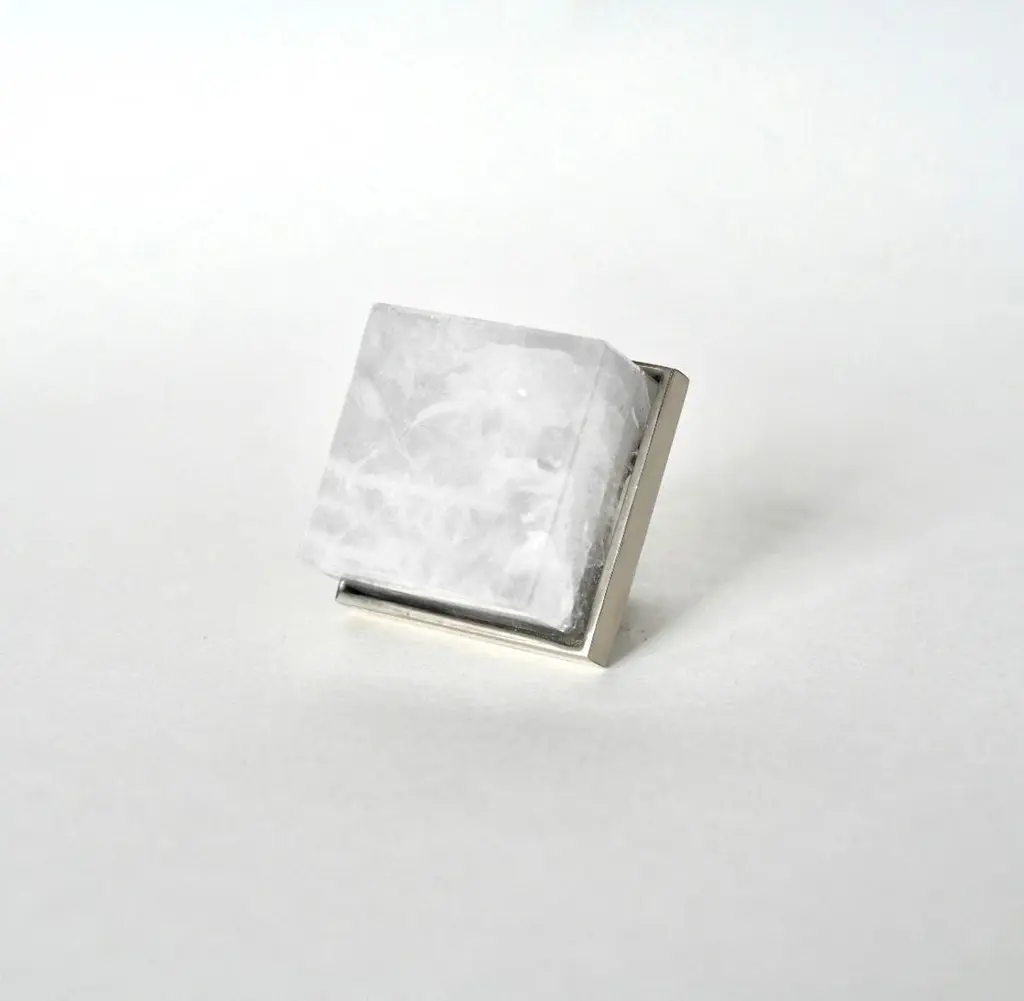 Cubic form rock crystal quartz knob with nickel plating base. Created by Phoenix Gallery, NYC.Custom size and finish upon request.