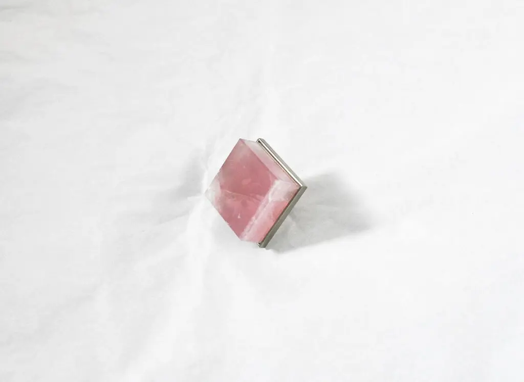 Cubic form rose rock crystal quartz knob with nickel plating base. Created by Phoenix Gallery, NYC.