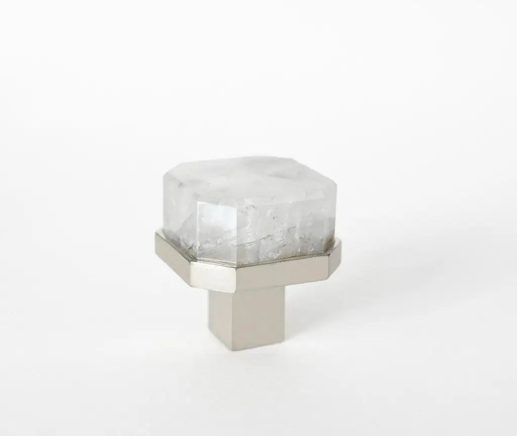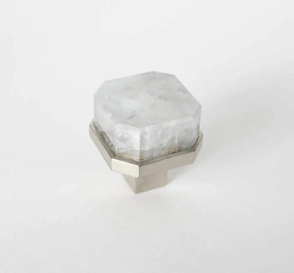 Octagon form rock crystal quartz knob with nickel plating base. Created by Phoenix Gallery, NYC.