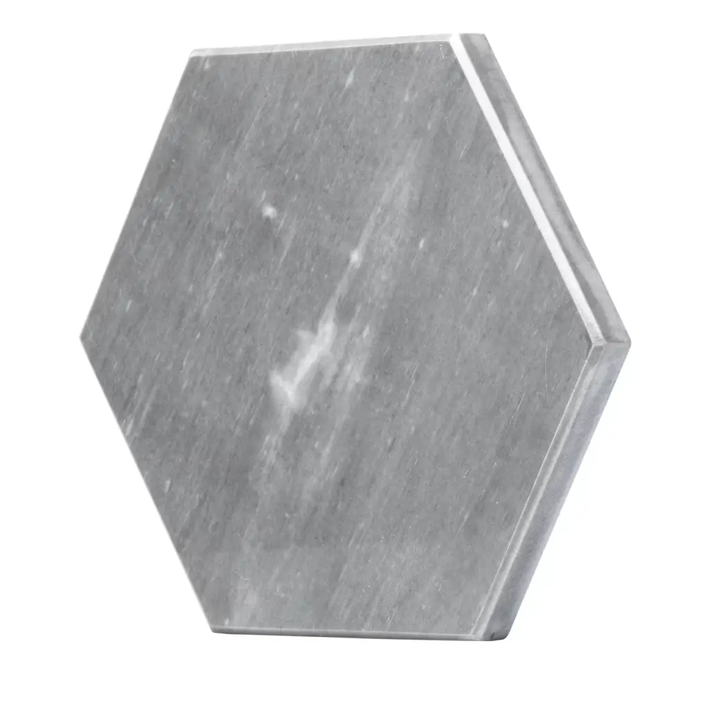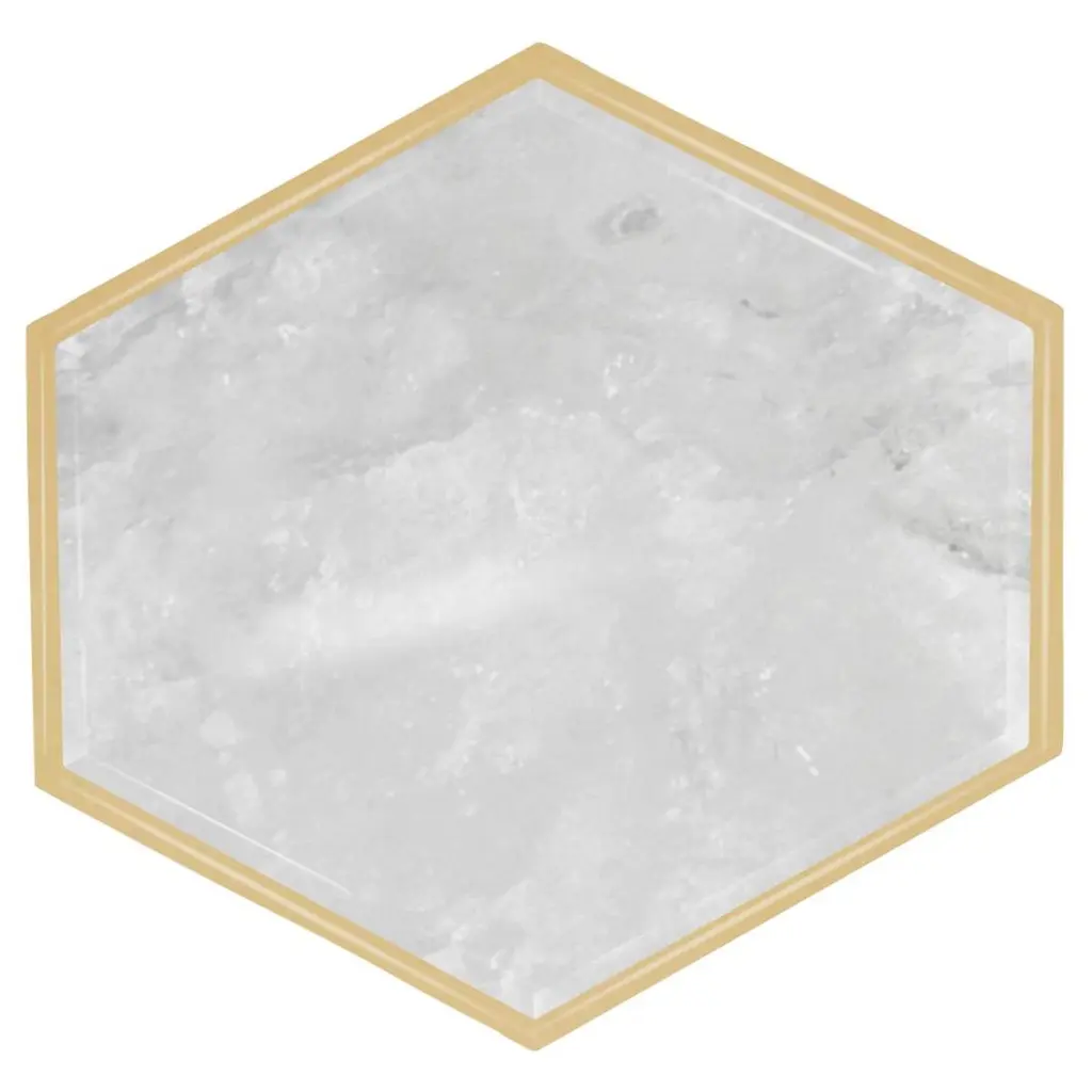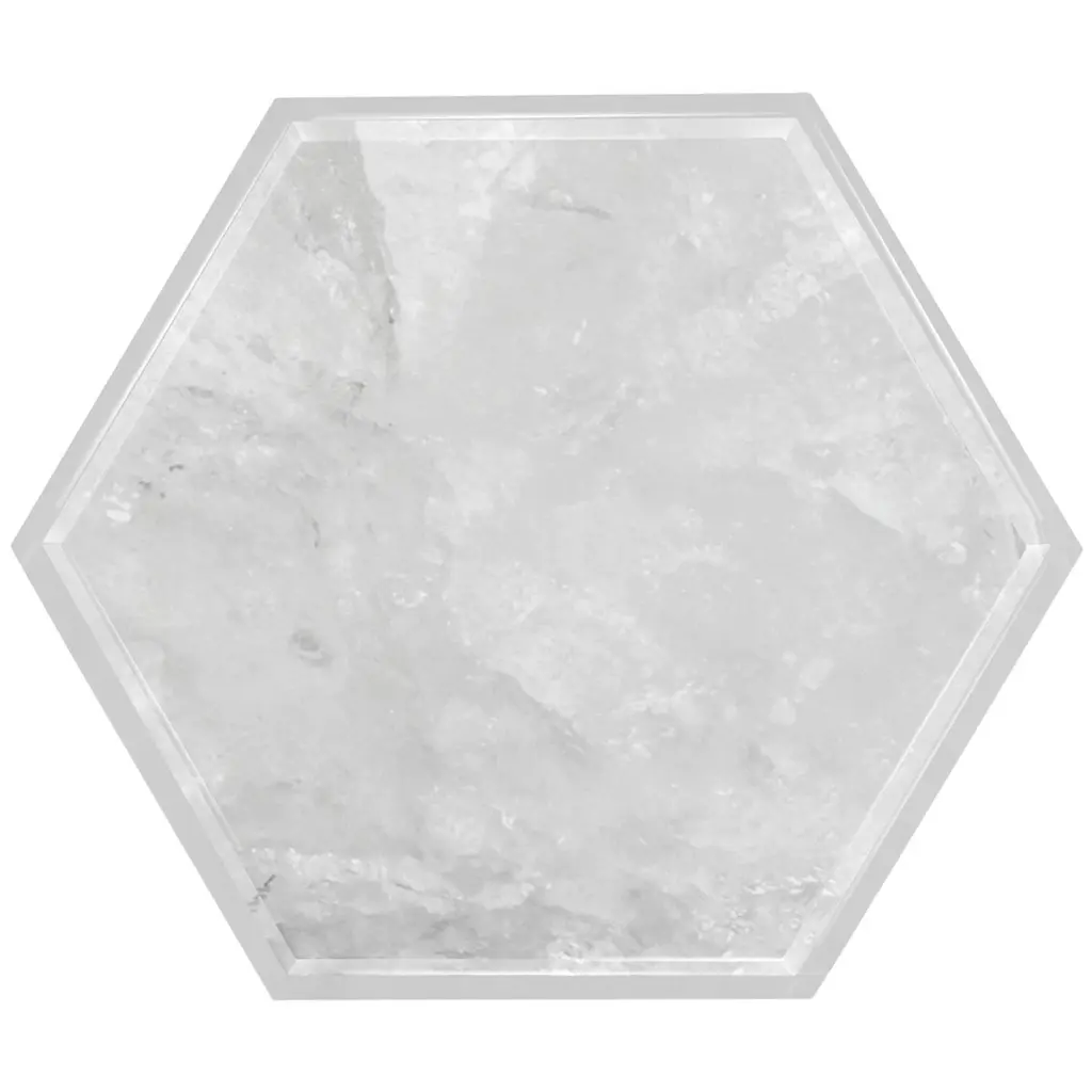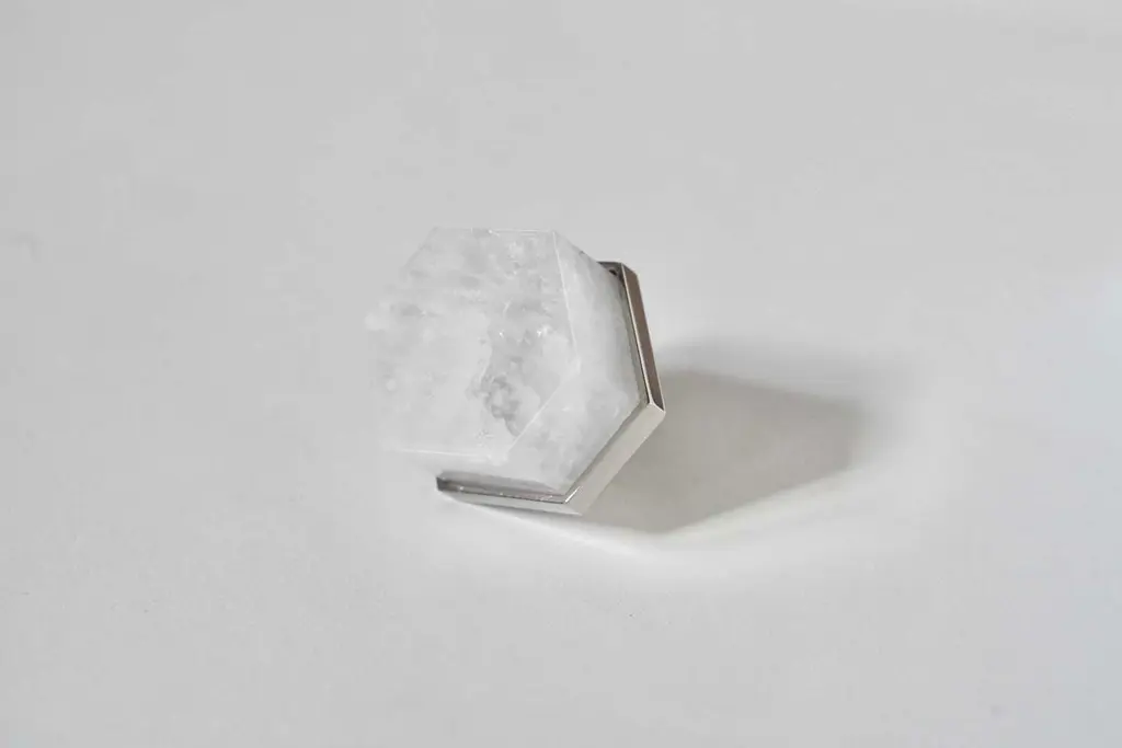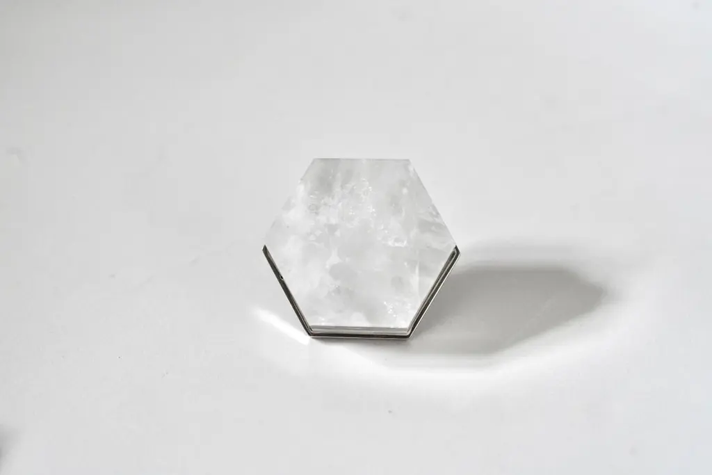 Hexagon form rock crystal quartz knob with nickel plating base. Created by Phoenix Gallery, NYC.