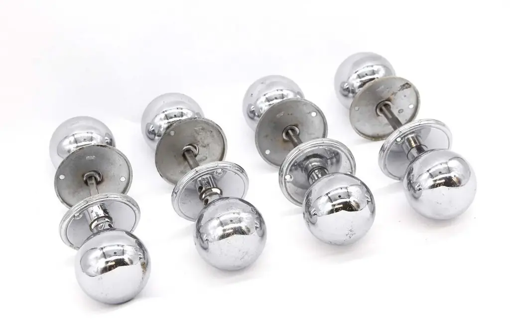 Set Of 4 Vintage Modern Chrome Ball Shaped Round Door Knob Sets