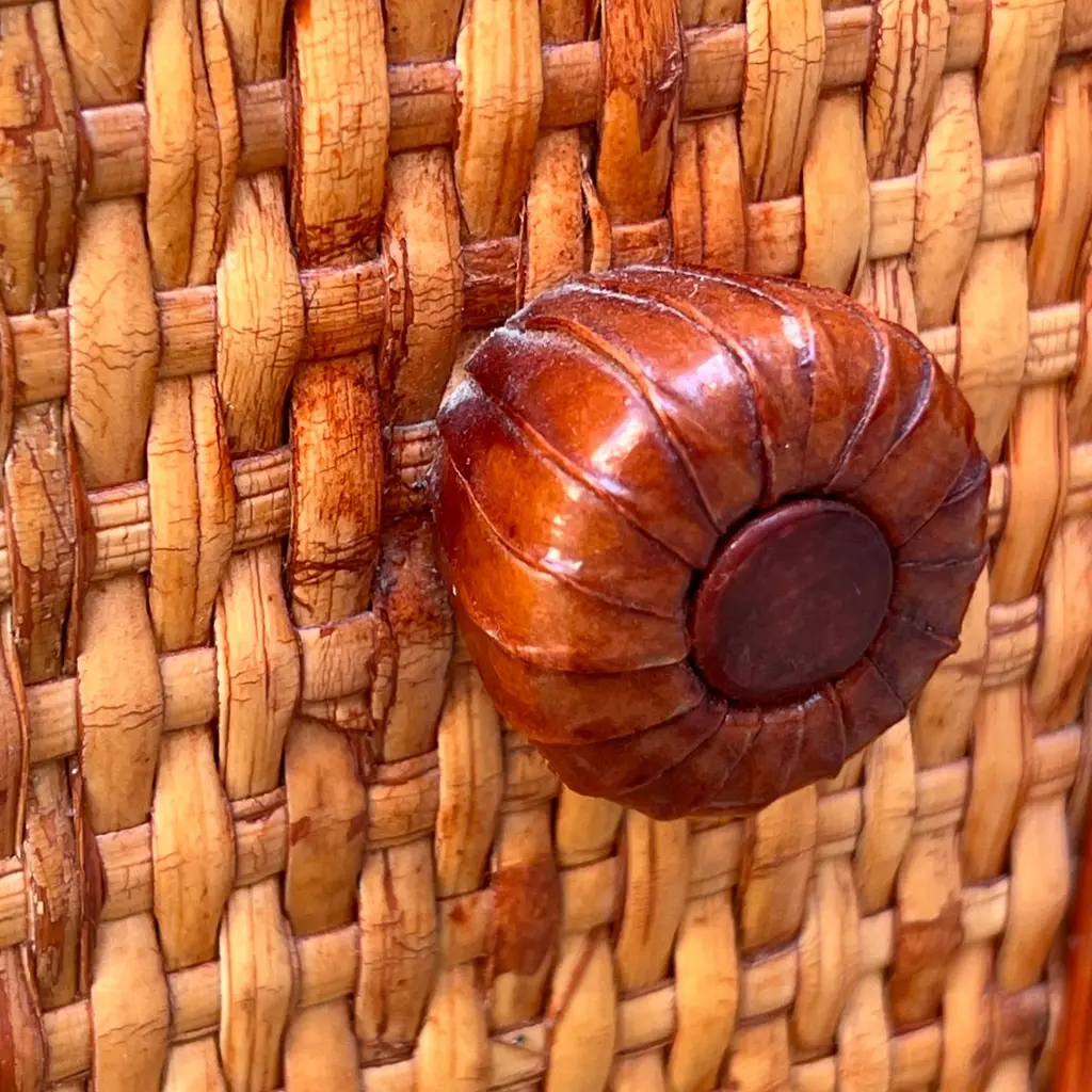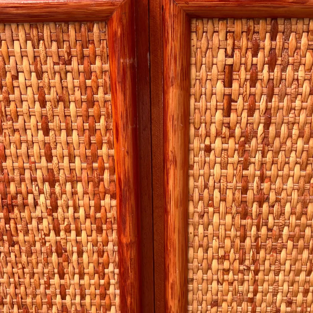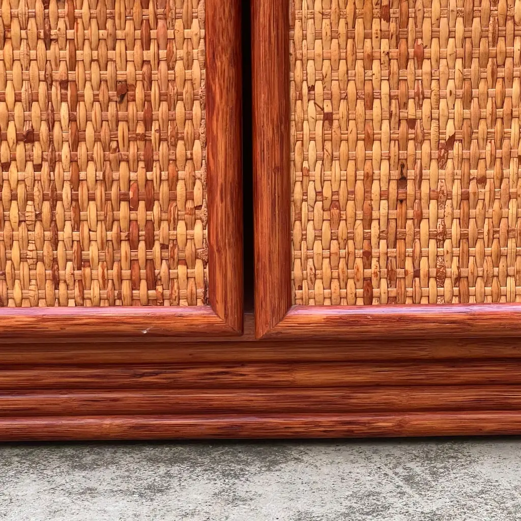 Small Wood And Rattan Cabinet - Leather Knobs - Maugrion/roche Bobois - 80's