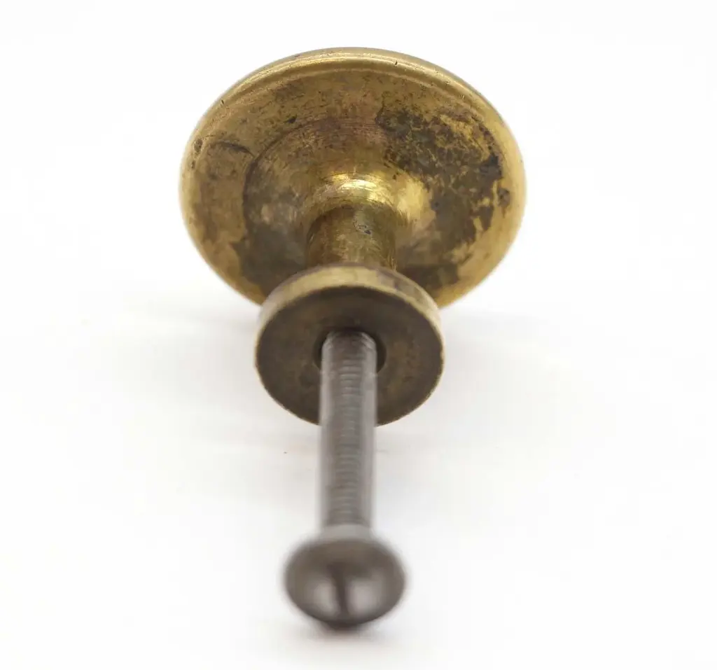 Vintage concentric cabinet or drawer knob with a polished finish. A mounting screw is included. Priced each. The manufacturer and exact date of creation are unknown. The dimensions are 1 in. D x 1 in. diameter.