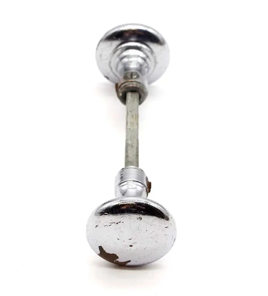 Vintage Chrome Over Brass Pair Of Passage Door Knobs