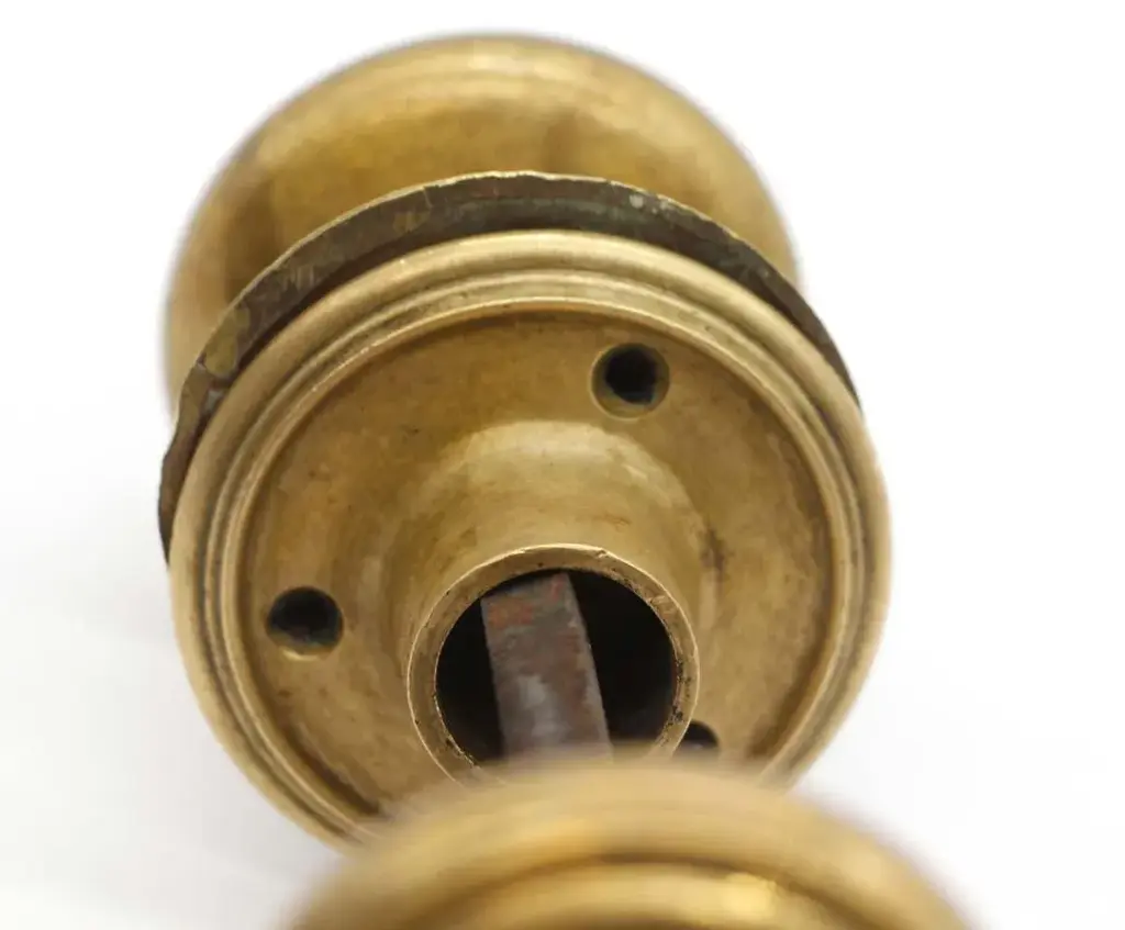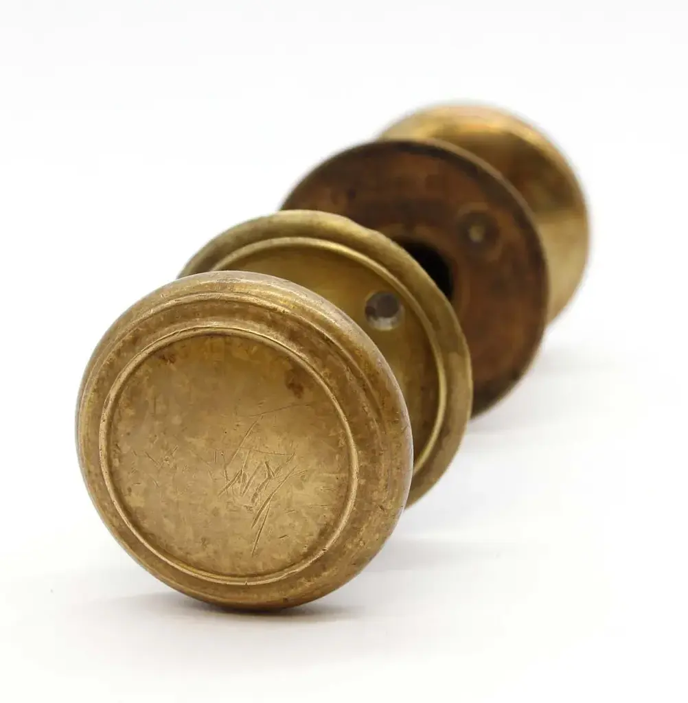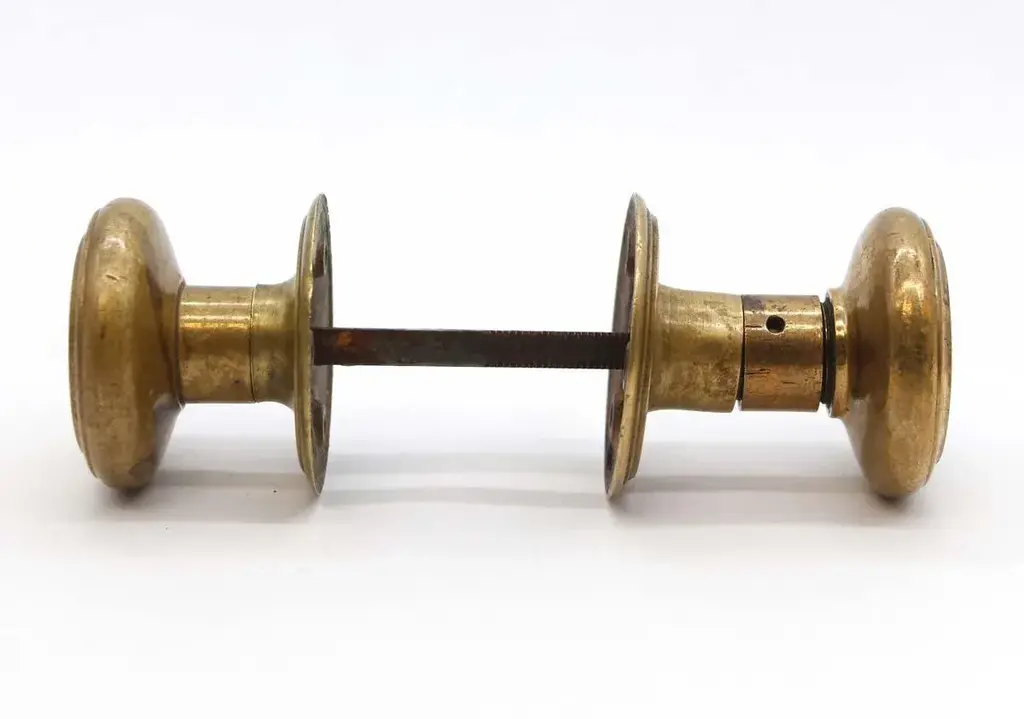 Vintage Round Cast Brass Concentric Passage Door Knob Set With Rosettes
