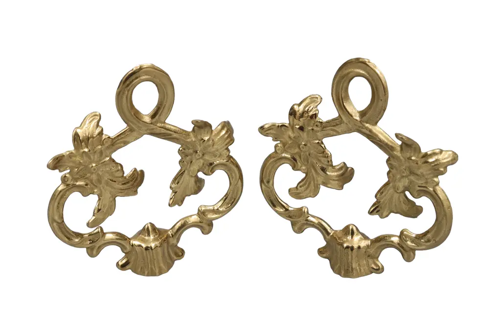 Rocaille Loop Brass Lamp Finials, A Pair