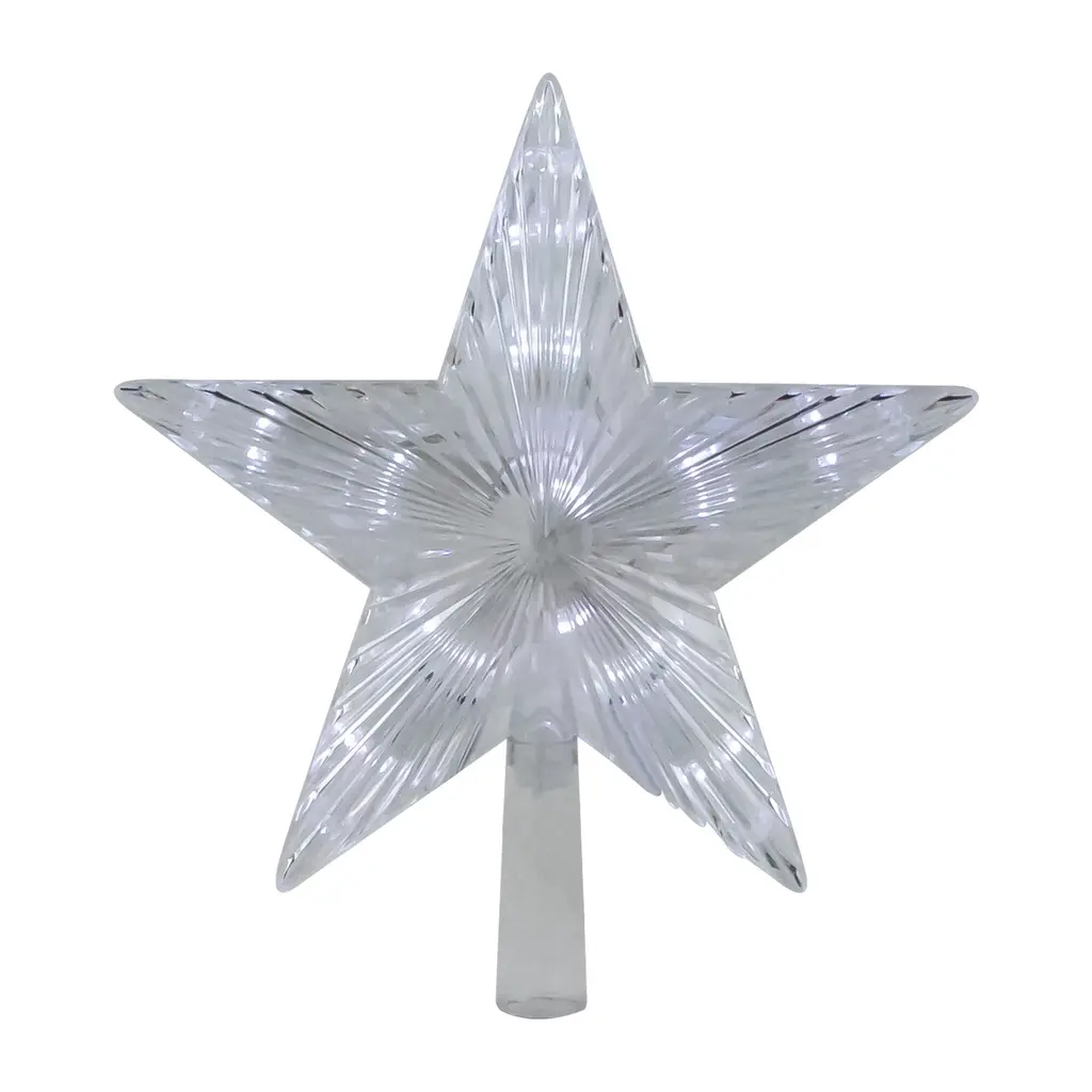 Lamp finial crafted from an upcycled Waterford crystal ornament topping a knurled brass finial base sized to fit a standard-size lamp harp with a 1/4" stem. Coloration may vary based on the nature of crystal material and varied light sources.