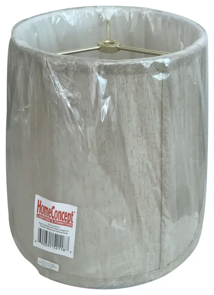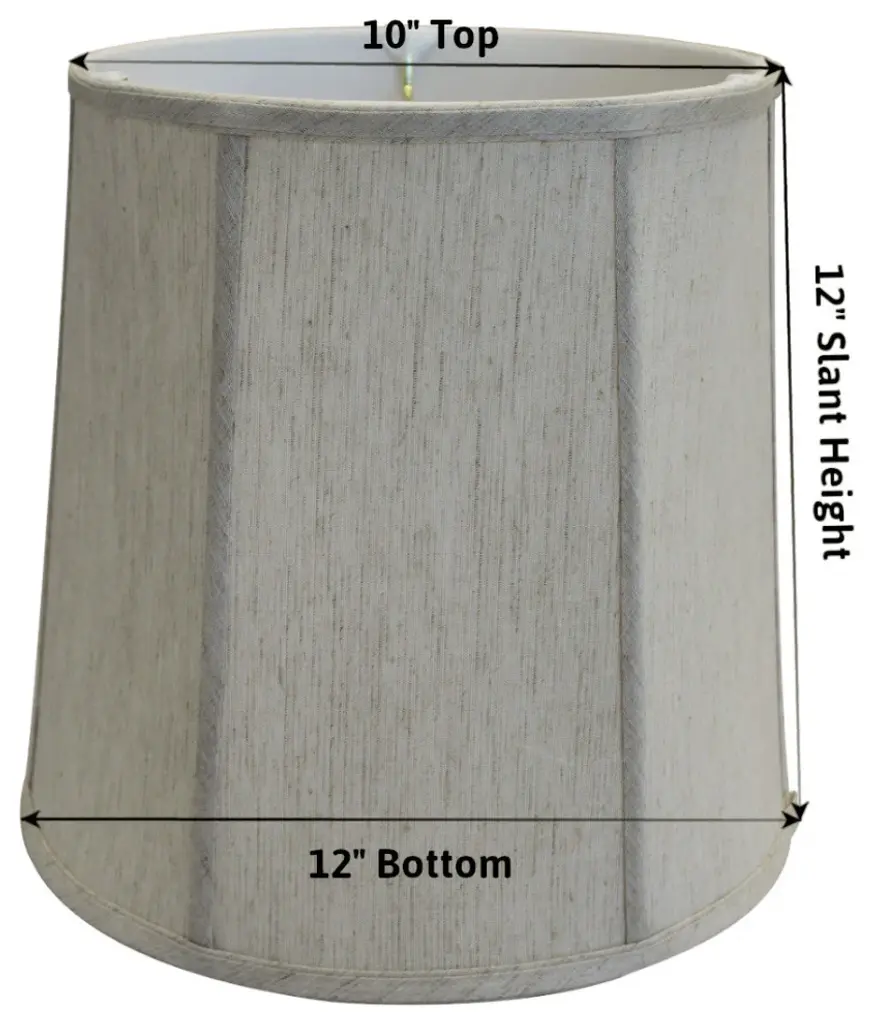Home Concept Signature Shades feature the finest premium linen fabric. Durable Upholstery-Quality fabric means your new lampshade will last for decades. It wont get brittle from smoke or sunlight like less expensive fabrics. Heavy brass and steel frames means your shades can withstand abuse from kids and pets. It''s a difference you can feel when you lift it Hard Back Textured Oatmeal with White Lining Drum Shape Lampshade 10 Top x 12 Bottom x 12 Slant Height Includes Notched Spider Fitter with 1 drop Top shelf softback lampshade found in better lighting showrooms. Durable Hotel quality shade. Fits best with a 10 harp.