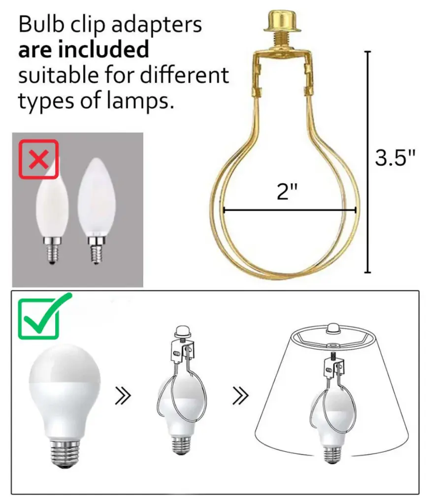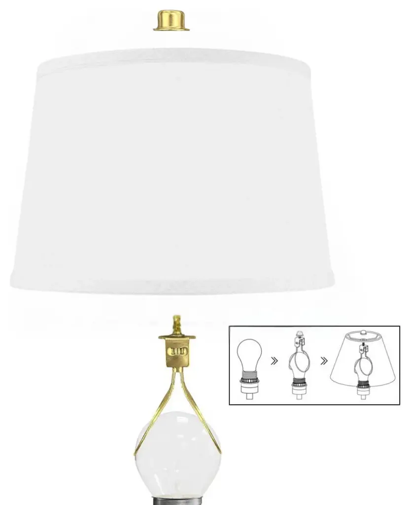 CLIP-ON Fitter lampshade is designed to clip on to your standard edison light bulb. Standard light bulbs are 1.75" wide. Home Concept Signature Shades feature the finest premium thick White Linen Fabric in Hardback Shallow Drum Lamp Shade.Durable parchment means your new lampshade will last for decades. It wont get brittle from smoke or sunlight like less expensive paper shades.Heavy brass and steel frames means your shades can withstand abuse from kids and pets. It''s a difference you can feel when you lift it. Illuminate your living space with the refined touch of our Clip on Fitter Lampshade, blending functionality with style.CLIP ON Fitter designed to clip on to your standard edison light bulb. Standard light bulbs are 1.75" wide. PLEASE REVIEW ALL IMAGES TO VERIFY THIS SHADE WILL FIT ON YOUR LAMP BASE. Illuminate your living space with the refined touch of our Clip on Fitter Lampshade, blending functionality with style.FABRIC - Hardback Shallow Drum Lamp Shade White LinenDIMENSIONS - 10" Top x 12" Bottom x 8" Slant heightDELUXE LAMP SHADE, found in better lighting showrooms. Durable Hotel quality shade.COMPLETE SHADE KIT Includes everything you need to use on bare-bulb lamp: Clip-on fitter, lampshade, and brass finial Cap.