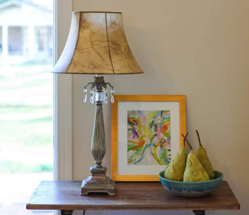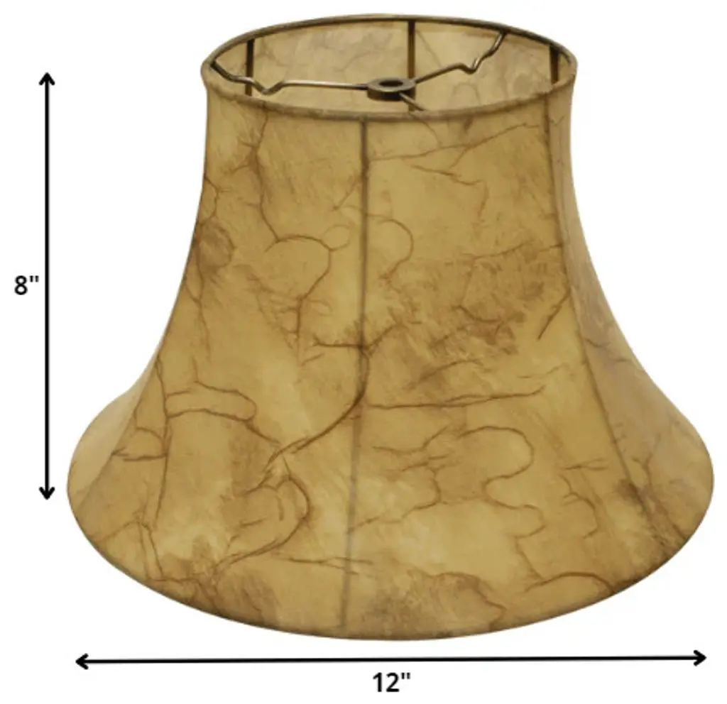 This 12" Antique Parchment Slanted Softback Lampshade has a hint of farmhouse flair and will be a great addition to your lamp base. This transitional bell faux leather softback lampshade includes a washer fitter that fits over a standard harp and can be used with your existing finial design. This high quality crafted bell shape has a slight slant to give it some visual interest and is crafted of the finest parchment with a fold on top and bottom of the shade. 8" x 12" x 12"