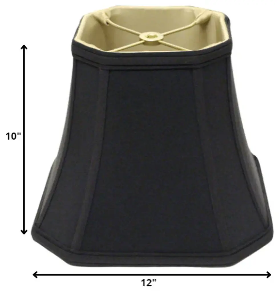 This Black with Bronze Lining Slanted Square Bell No Slub Lampshade has a hint of traditional flair and will be a great addition to your lamp base. This softback lampshade includes a standard washer fitter that fits over a standard harp and can be used with your existing finial design. This high quality crafted square bell shaped has a slight slant to give it some visual interest and is crafted of the finest no slub innsbruk cotton with a fold on top and bottom of the shade. 10" x 12" x 12"