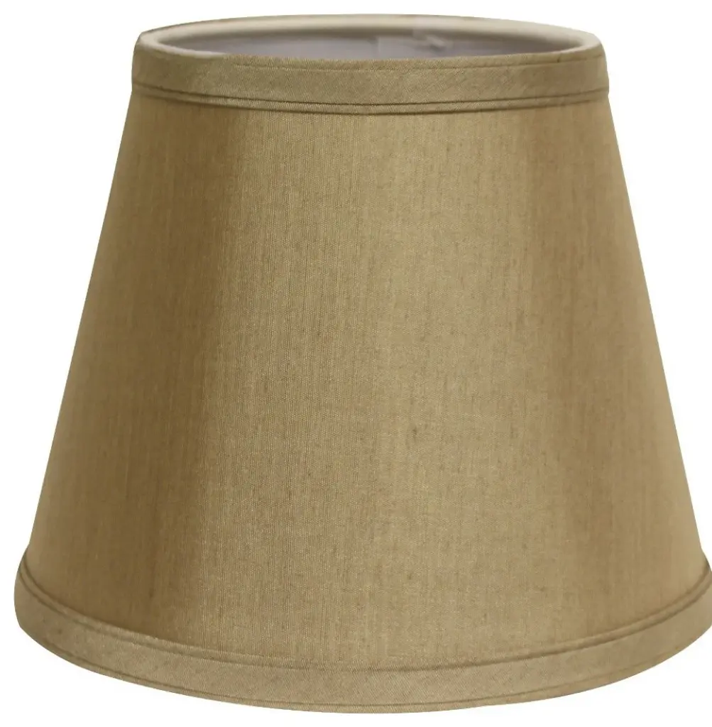 This Pale Brown Hardback Empire Slanted Slanted No Slub Lampshade has a hint of traditional flair and will be a great addition to your lamp base. This hardback lampshade includes a standard uno fitter that fits over a standard harp and can be used with your existing finial design. This high quality crafted drum shape has a slight slant to give it some visual interest and is crafted of the finest no slub innsbruk cotton with a fold on top and bottom of the shade. 8" x 12" x 12"