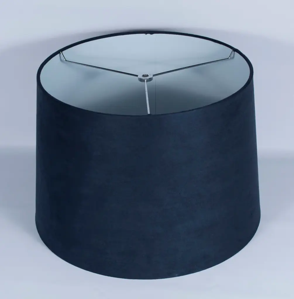 Our suede lamp shades add a cozy and unique look to your space. The shade measures 10" across the top, 12" across the bottom, and 8.5" overall height. Maximum recommended wattage is 150 watts.Nickel spider fitter; finial and harp not included.