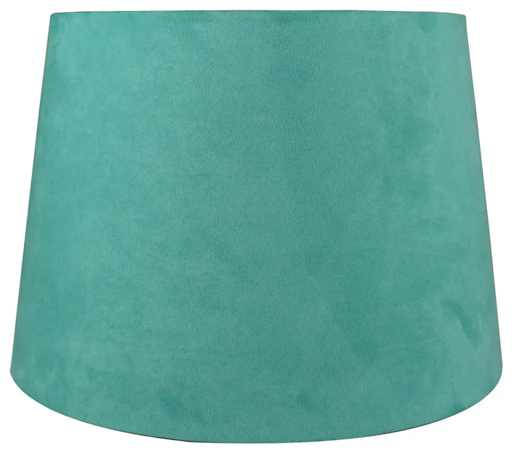 Urbanest classic handmade suede French drum lamp shade in turquoiseNickel spider fitterMeasurements: 10" across the top, 12" across the bottom, and 8 1/2" overall heightMaximum recommended wattage for shade is 100 watts.