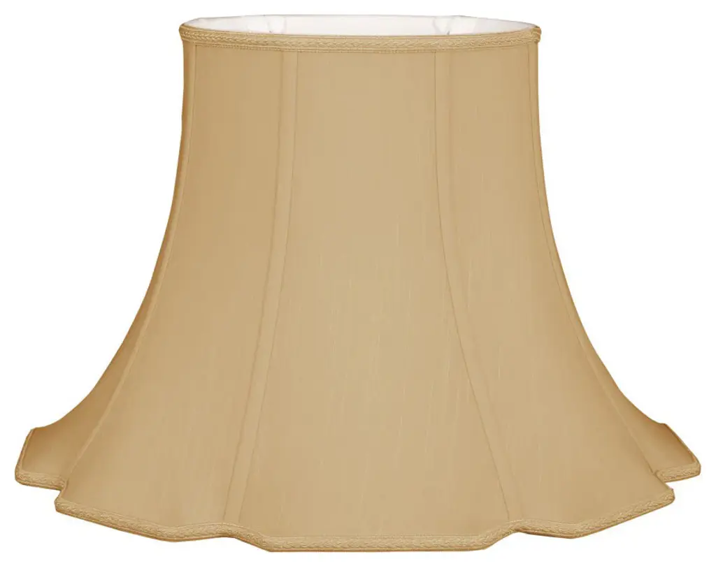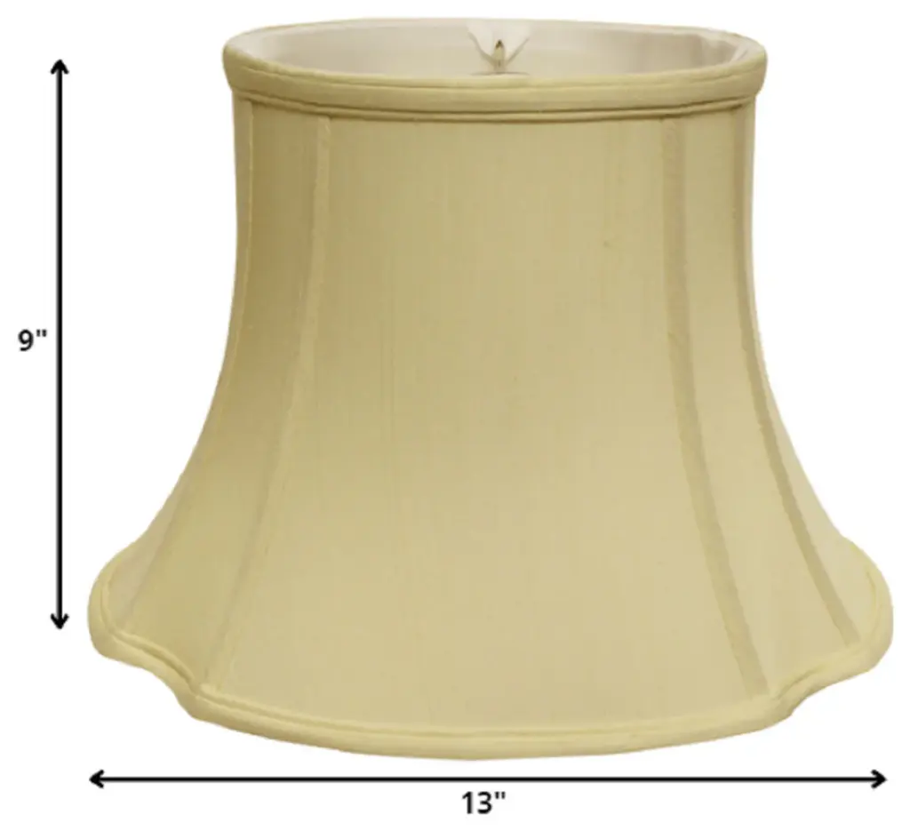 This Antique White Reversed Oval Monay Shantung Lampshade has a hint of cottage flair and will be a great addition to your lamp base. This softback lampshade includes a standard washer fitter that fits over a standard harp and can be used with your existing finial design. This high quality crafted corner oval shape has a slight slant to give it some visual interest and is crafted of the finest monay shantung with a fold on top and bottom of the shade. 9" x 13" x 13"