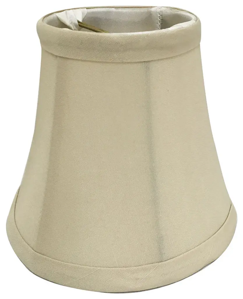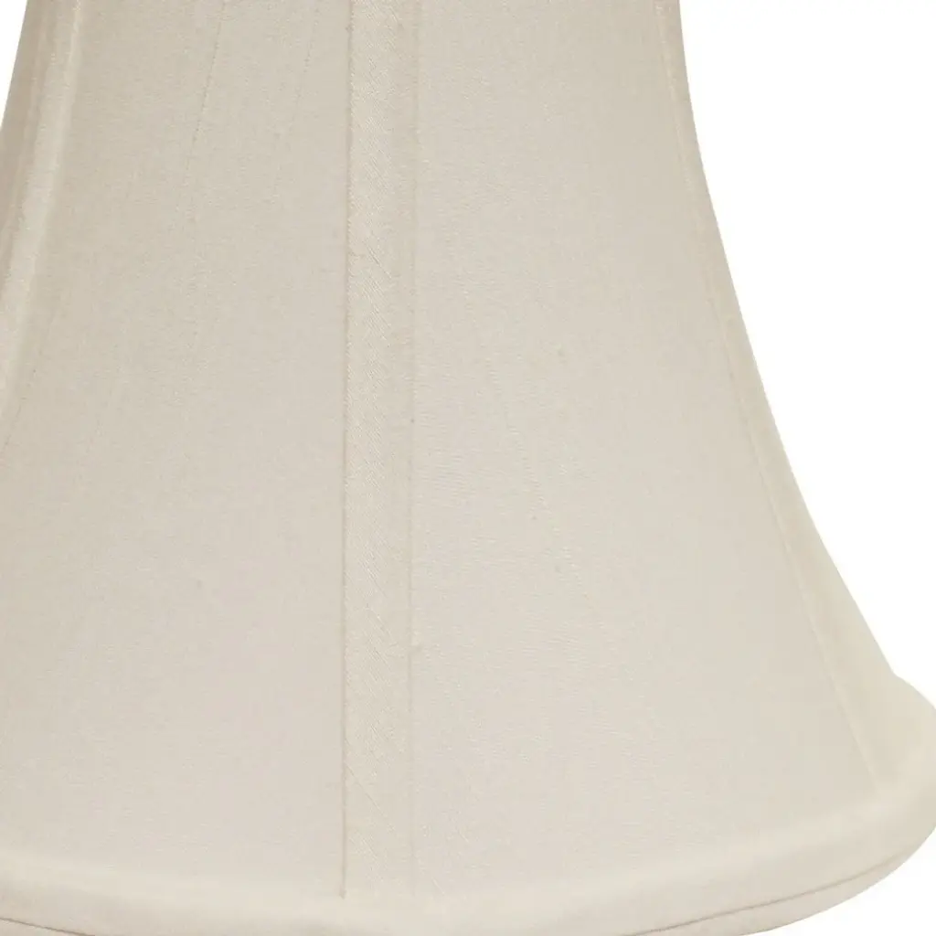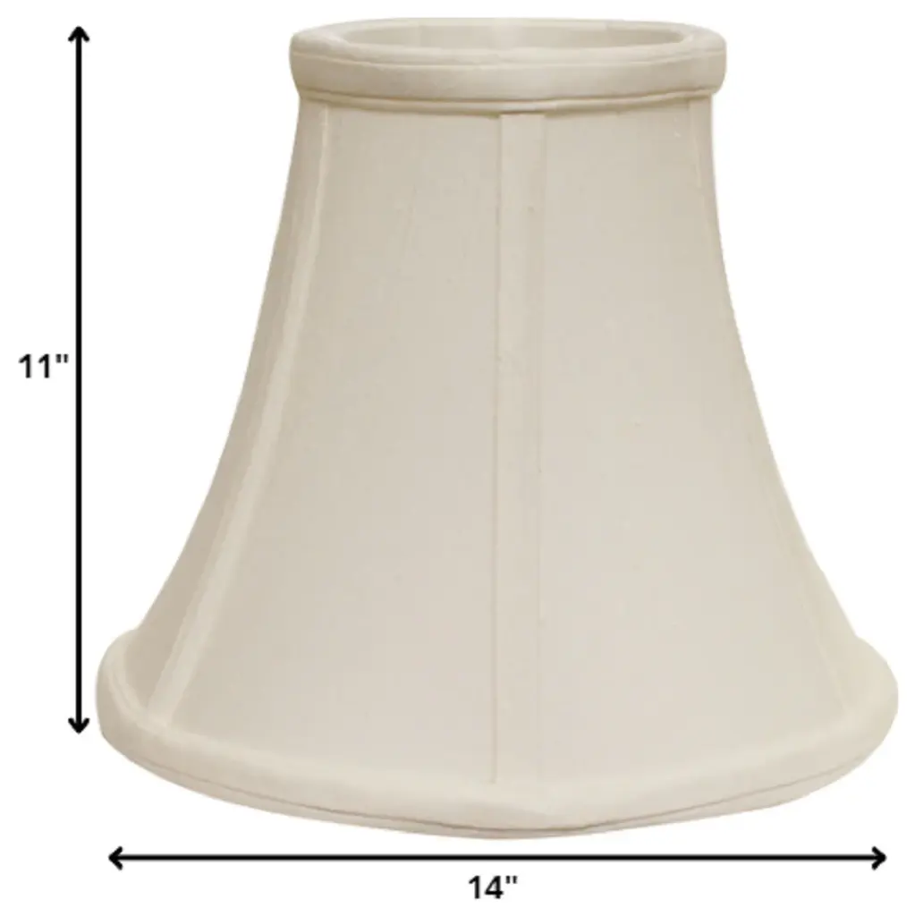 This White Premium Bell Monay Shantung Lampshade has a hint of traditional flair and will be a great addition to your lamp base. This softback lampshade includes a standard bulb clip that fits over a standard harp and can be used with your existing finial design. This high quality crafted bell shape has a slight slant to give it some visual interest and is crafted of the finest monay shantung with a fold on top and bottom of the shade. 11" x 14" x 14"