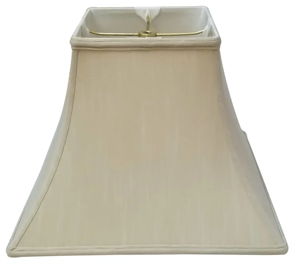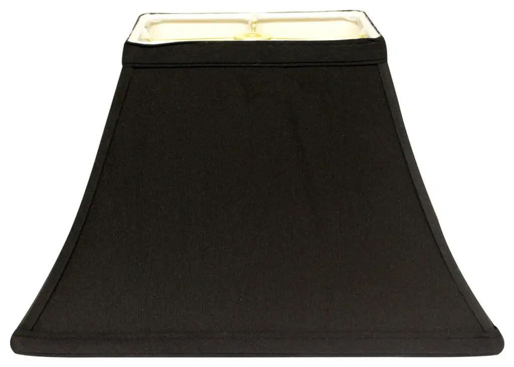 This Black with White Lining Rectangle Bell Shantung Lampshade has a hint of traditional flair and will be a great addition to your lamp base. This hardback lampshade includes a standard washer fitter that fits over a standard harp and can be used with your existing finial design. This high quality crafted rectangle bell shaped has a slight slant to give it some visual interest and is crafted of the finest shantung with a fold on top and bottom of the shade. 11" x 16" x 10"