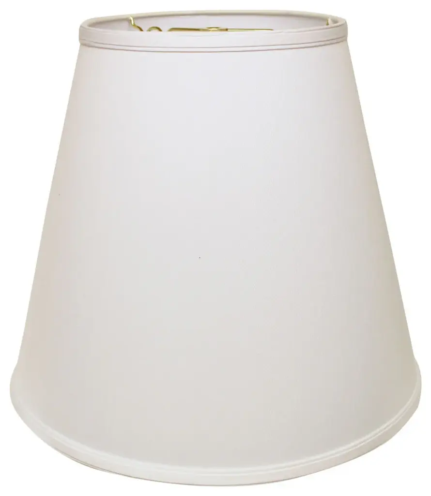 This White Deep Empire No Slub Lampshade has a hint of traditional flair and will be a great addition to your lamp base. This hardback lampshade includes a standard washer fitter that fits over a standard harp and can be used with your existing finial design. This high quality crafted drum shape has a slight slant to give it some visual interest and is crafted of the finest no slub innsbruk cotton with a fold on top and bottom of the shade. 14" x 16" x 16"