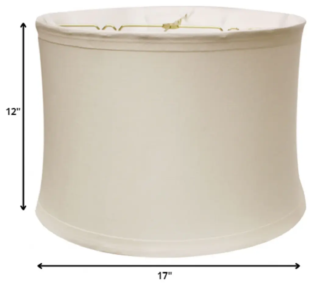 This Snow Drum Trimmed Linen Lampshades has a hint of mid-century modern flair and will be a great addition to your lamp base. This softback lampshade includes a standard washer fitter that fits over a standard harp and can be used with your existing finial design. This high quality crafted drum shape has a slight slant to give it some visual interest and is crafted of the finest linen with a fold on top and bottom of the shade. 12" x 17" x 17"