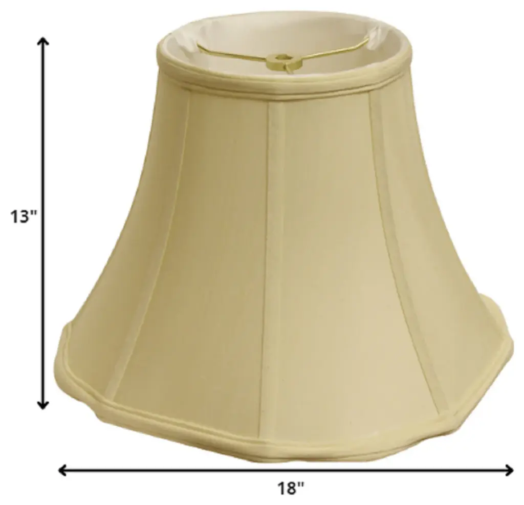 This Antique White Octagon Monay Shantung Lampshade has a hint of farmhouse flair and will be a great addition to your lamp base. This softback lampshade includes a standard washer fitter that fits over a standard harp and can be used with your existing finial design. This high quality crafted fancy octagon shaped has a slight slant to give it some visual interest and is crafted of the finest no monay shantung with a fold on top and bottom of the shade. 13" x 18" x 18"
