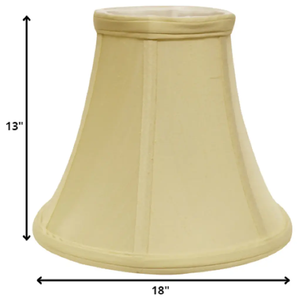 This Antique White Premium Bell Monay Shantung Lampshade has a hint of traditional flair and will be a great addition to your lamp base. This softback lampshade includes a standard bulb clip that fits over a standard harp and can be used with your existing finial design. This high quality crafted bell shape has a slight slant to give it some visual interest and is crafted of the finest monay shantung with a fold on top and bottom of the shade. 13" x 18" x 18"