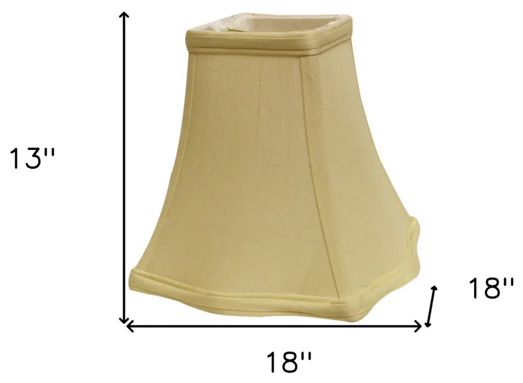 This Antique White Premium Square Monay Shantung Lampshade has a hint of traditional flair and will be a great addition to your lamp base. This softback lampshade includes a standard washer fitter that fits over a standard harp and can be used with your existing finial design. This high quality crafted fancy square shaped has a slight slant to give it some visual interest and is crafted of the finest no monay shantung with a fold on top and bottom of the shade. 13" x 18" x 18"
